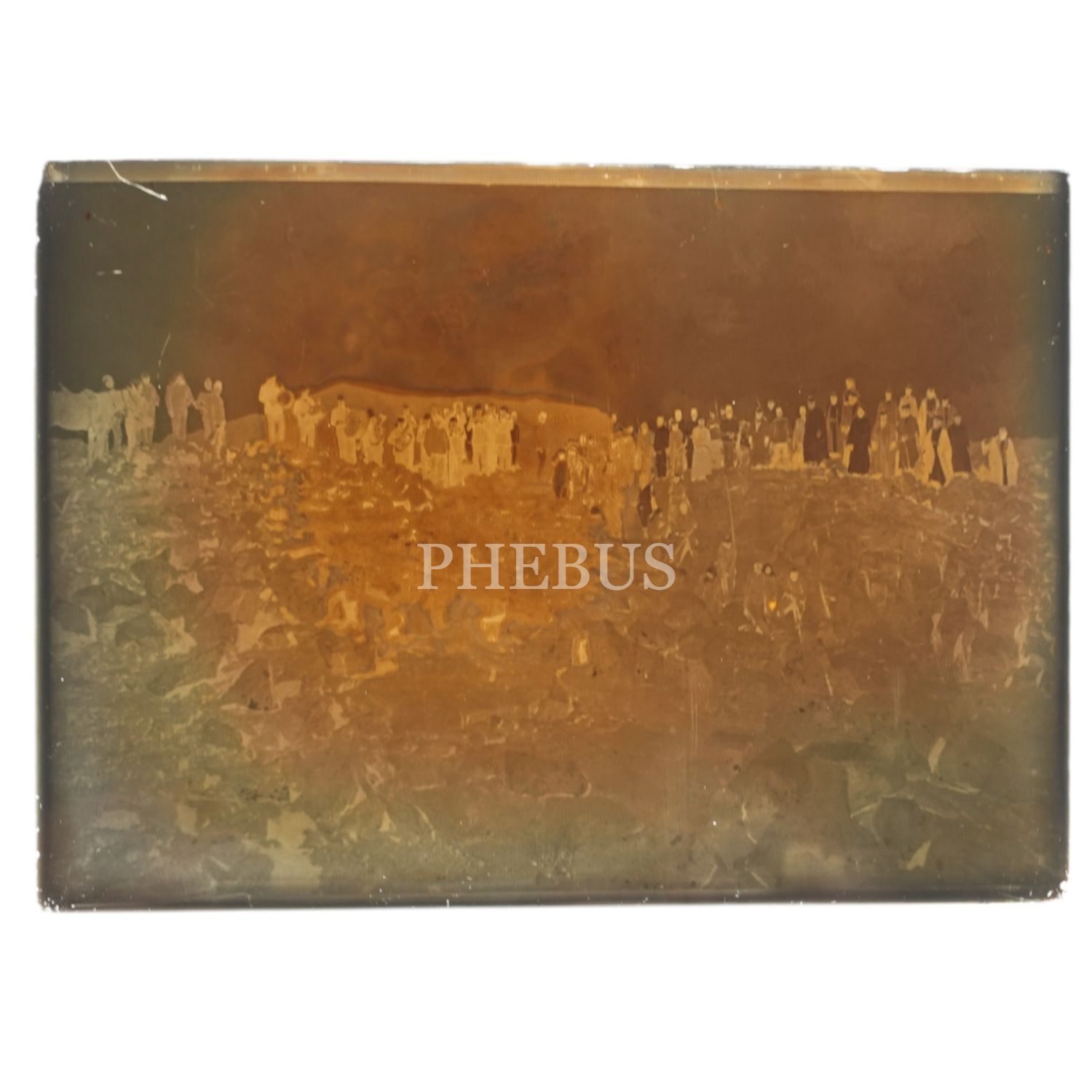 Bir grup Osmanlı subayı ve Arap yerlilerinin cam negatif fotoğrafı, 18x13 cm...