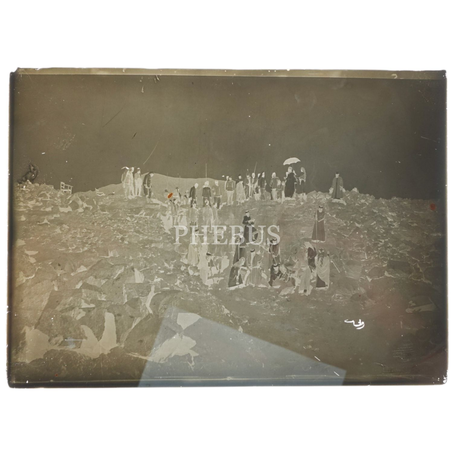 Bir grup Osmanlı subayı ve Arap yerlilerinin cam negatif fotoğrafı, 18x13 cm...