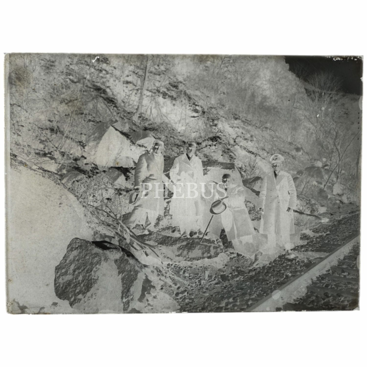 Demiryolu çalışanlarının cam negatif fotoğrafı, 18x13 cm...