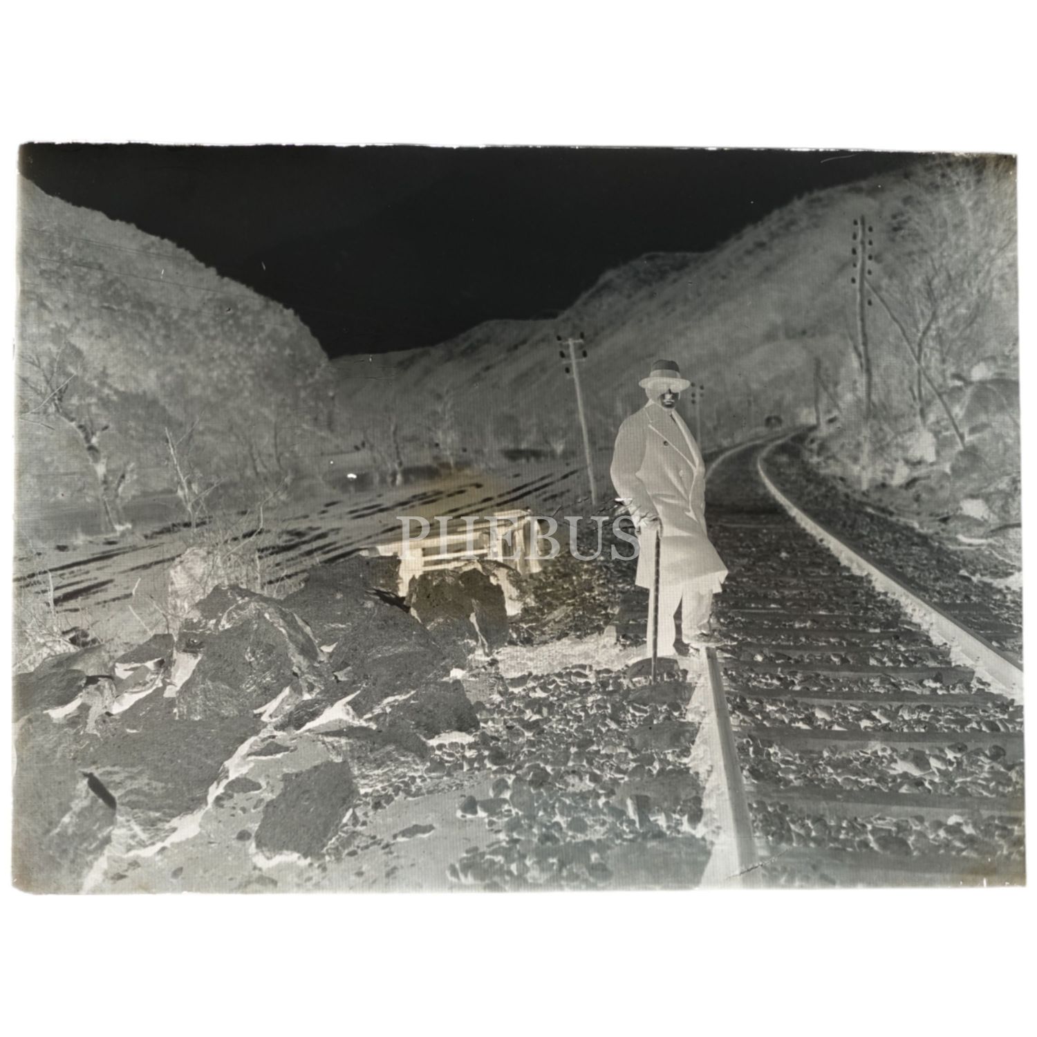 Demiryolu çalışanlarından bir beyefendinin cam negatif fotoğrafı, 18x13 cm...