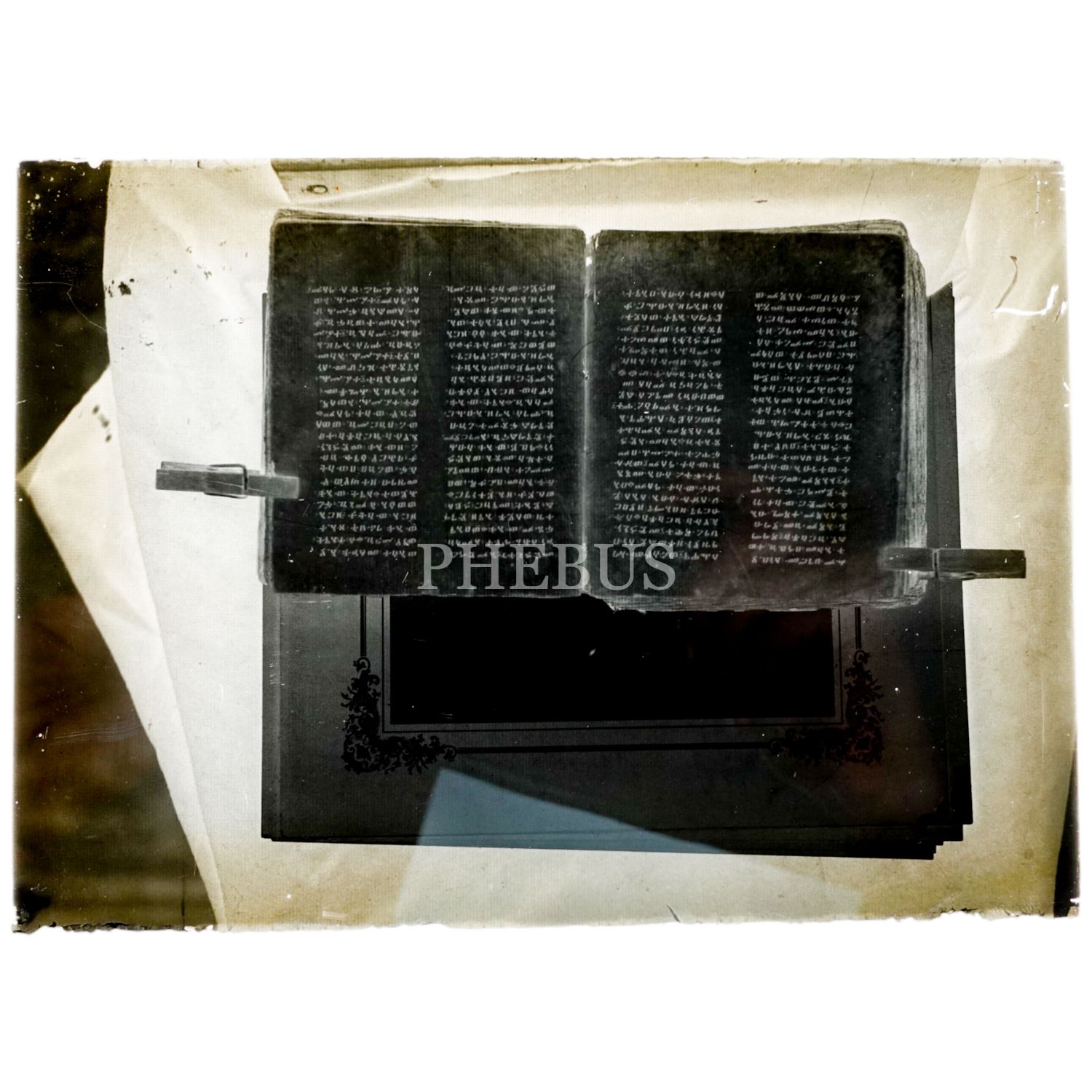 İbranice bir kitabın cam negatif fotoğrafı, 18x13 cm...