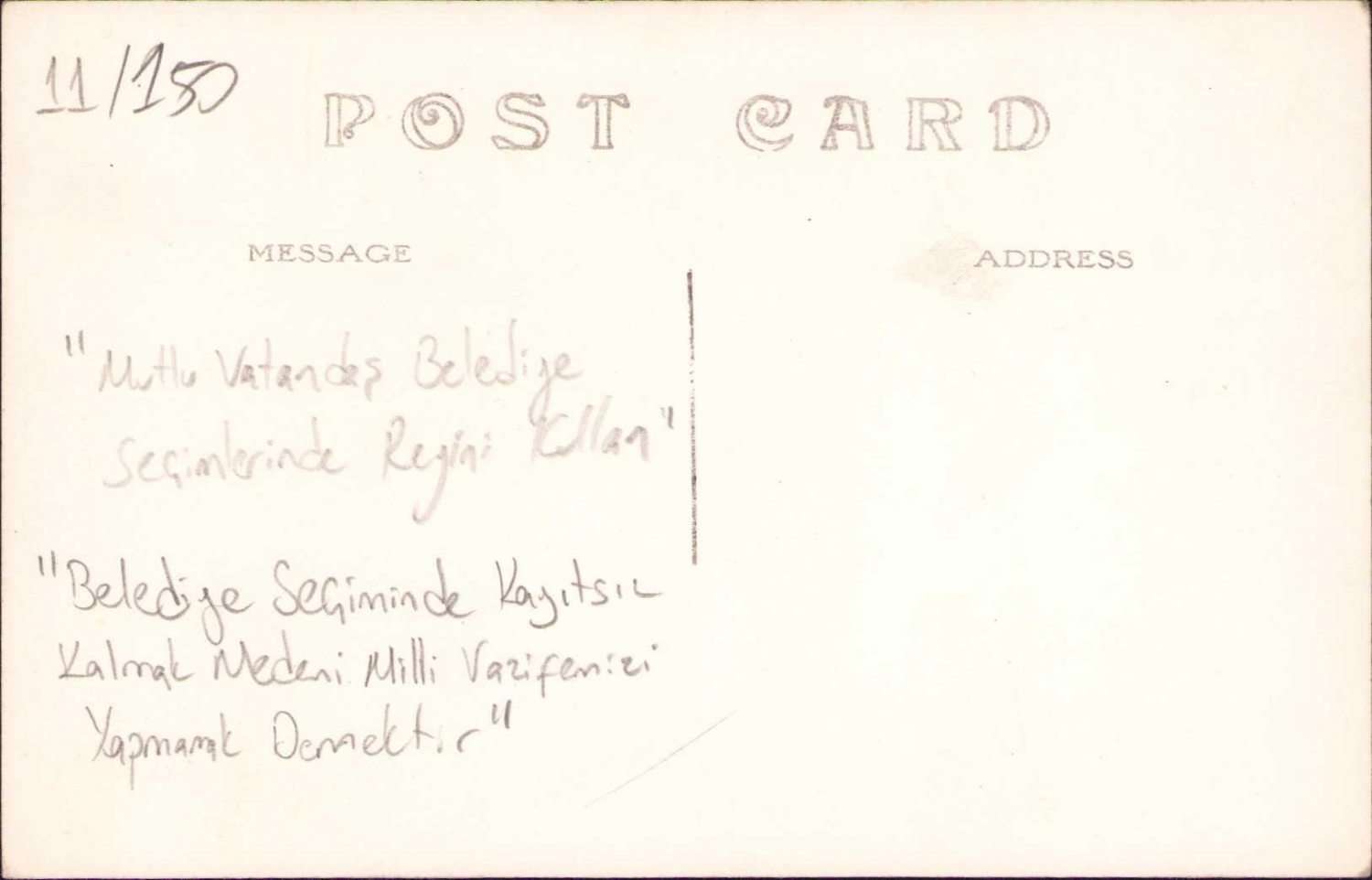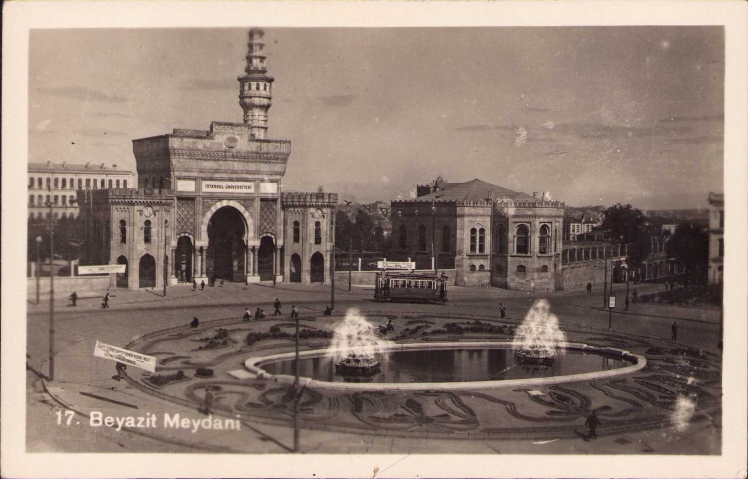 Beyazıt Meydanı, İstanbul Üniversitesi önündeki demirlerde "Mutlu Vatandaş Belediye Seçimlerinde Reyini Kullan" "Belediye Seçiminde Kayıtsız Kalmak Medeni Milli Vazifemizi Yapmak Demektir" pankartları asılı