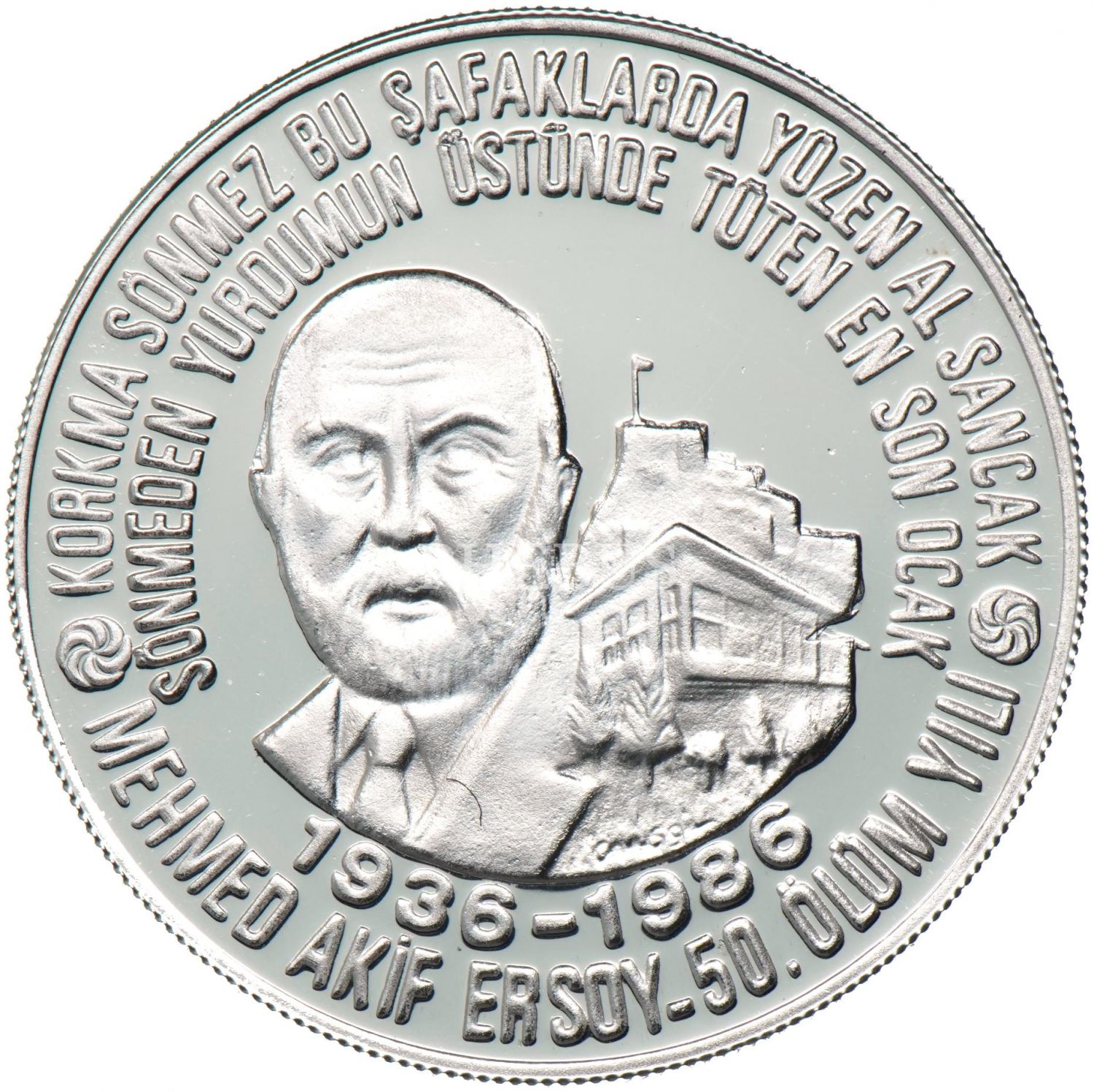 1986 Mehmet Akif Ersoy 50. Ölüm Yılı 10.000 Lira (23,33gr 925 ayar, proof gümüş) TR#H113 - Zamanında Darphane tarafından sertifikasız olarak piyasaya verilmiştir