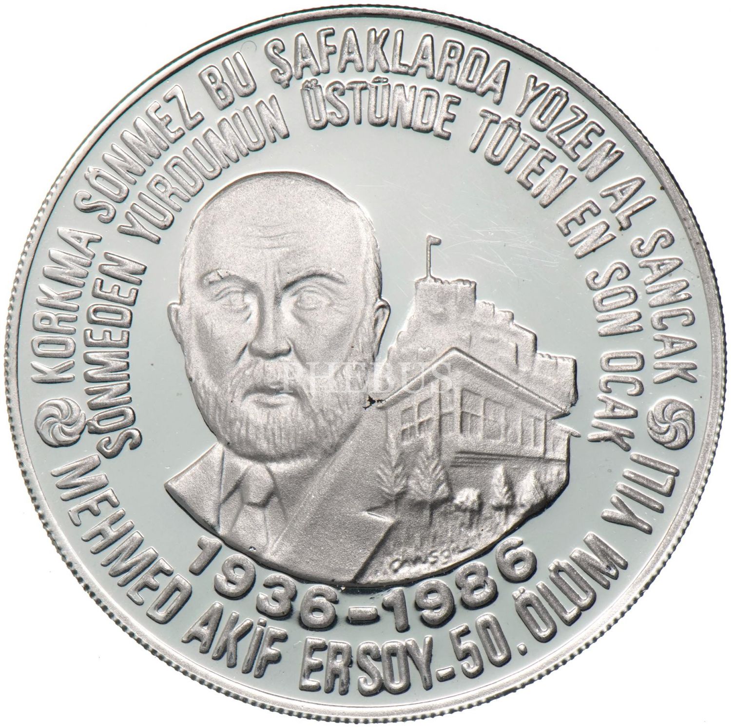 1986 Mehmet Akif Ersoy 50. Ölüm Yılı 10.000 Lira (23,33gr 925 ayar, proof gümüş) TR#H113 - Zamanında Darphane tarafından sertifikasız olarak piyasaya verilmiştir