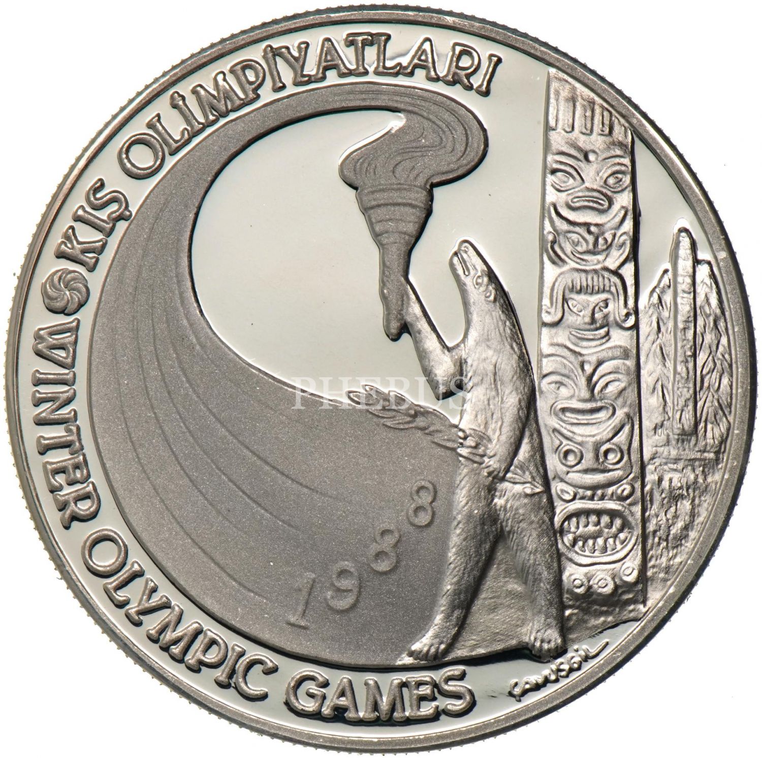 1988 Kanada Calgary Kış Olimpiyatları 10.000 Lira (23,51gr 925 ayar, proof gümüş) TR#H121 - Zamanında Darphane tarafından sertifikasız olarak piyasaya verilmiştir