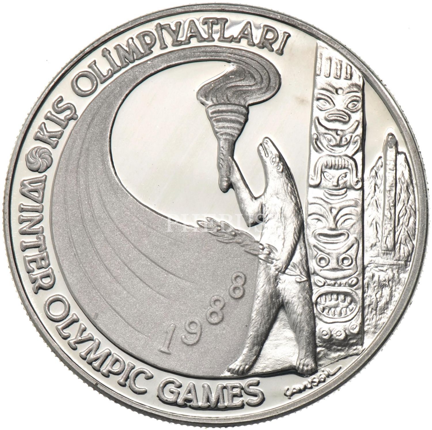 1988 Kanada Calgary Kış Olimpiyatları 10.000 Lira (23,51gr 925 ayar, proof gümüş) TR#H121 - Zamanında Darphane tarafından sertifikasız olarak piyasaya verilmiştir