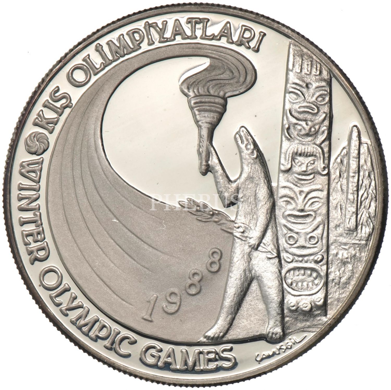 1988 Kanada Calgary Kış Olimpiyatları 10.000 Lira (23,51gr 925 ayar, proof gümüş) TR#H121 - Zamanında Darphane tarafından sertifikasız olarak piyasaya verilmiştir