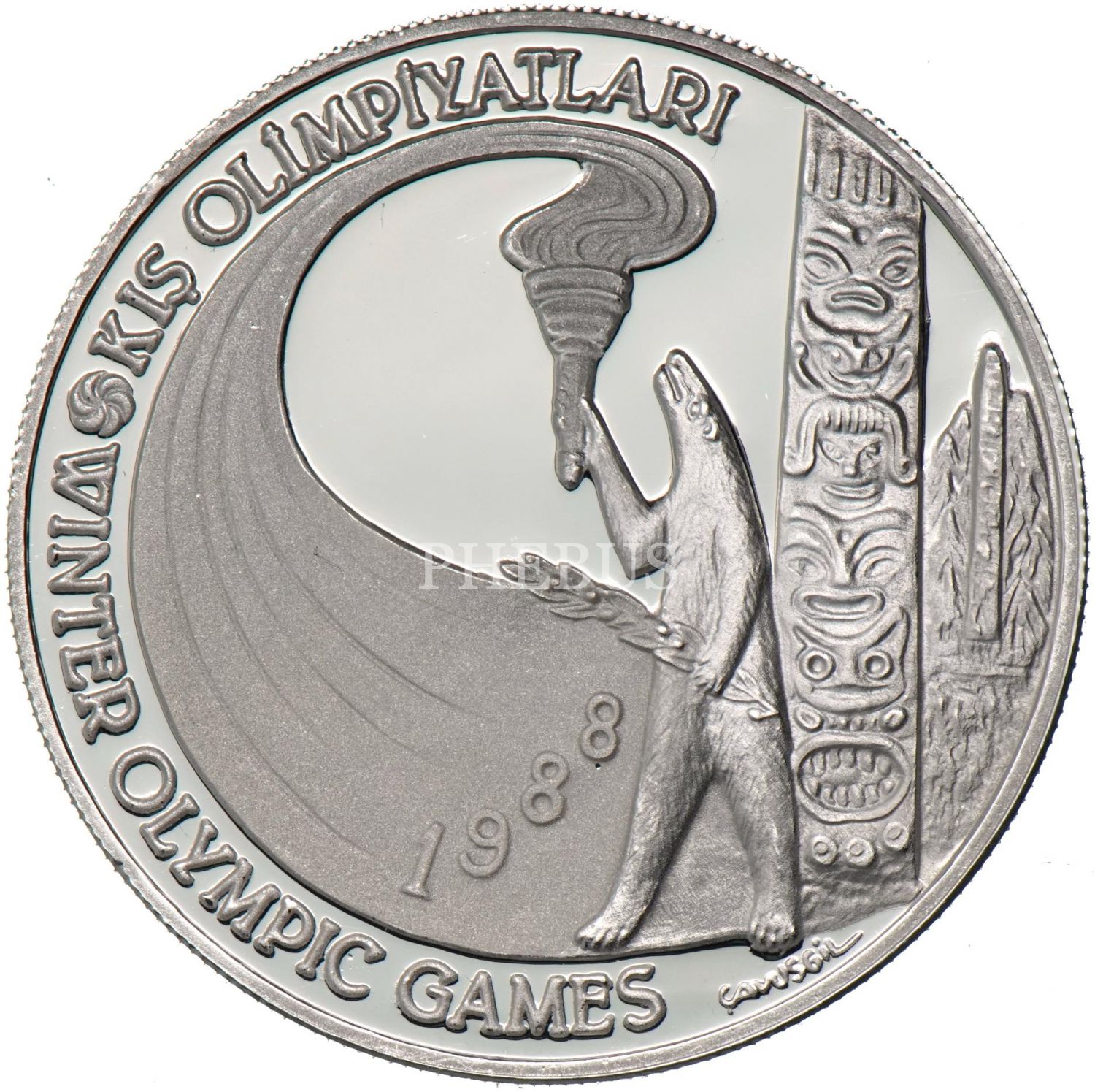 1988 Kanada Calgary Kış Olimpiyatları 10.000 Lira (23,51gr 925 ayar, proof gümüş) TR#H121 - Zamanında Darphane tarafından sertifikasız olarak piyasaya verilmiştir