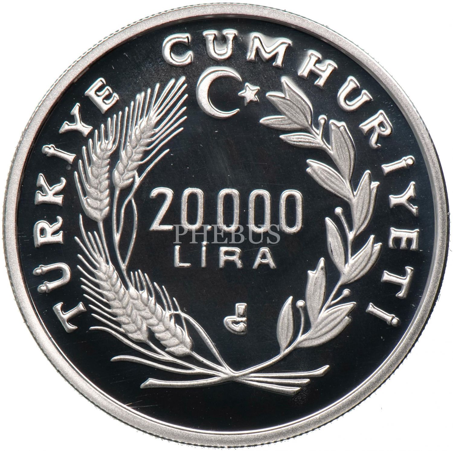 1990 Dünya Futbol Şampiyonası İtalya 20.000 Lira FUTBOLCU (23,33gr 925 ayar, proof gümüş) TR#H137 - Zamanında Darphane tarafından sertifikasız olarak piyasaya verilmiştir