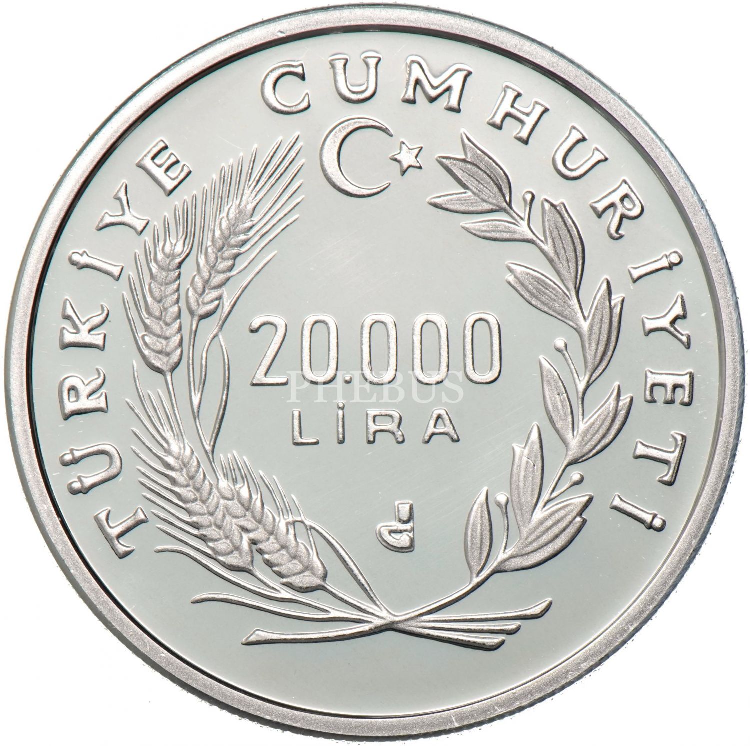 1990 Dünya Futbol Şampiyonası İtalya 20.000 Lira FUTBOLCU (23,33gr 925 ayar, proof gümüş) TR#H137 - Zamanında Darphane tarafından sertifikasız olarak piyasaya verilmiştir