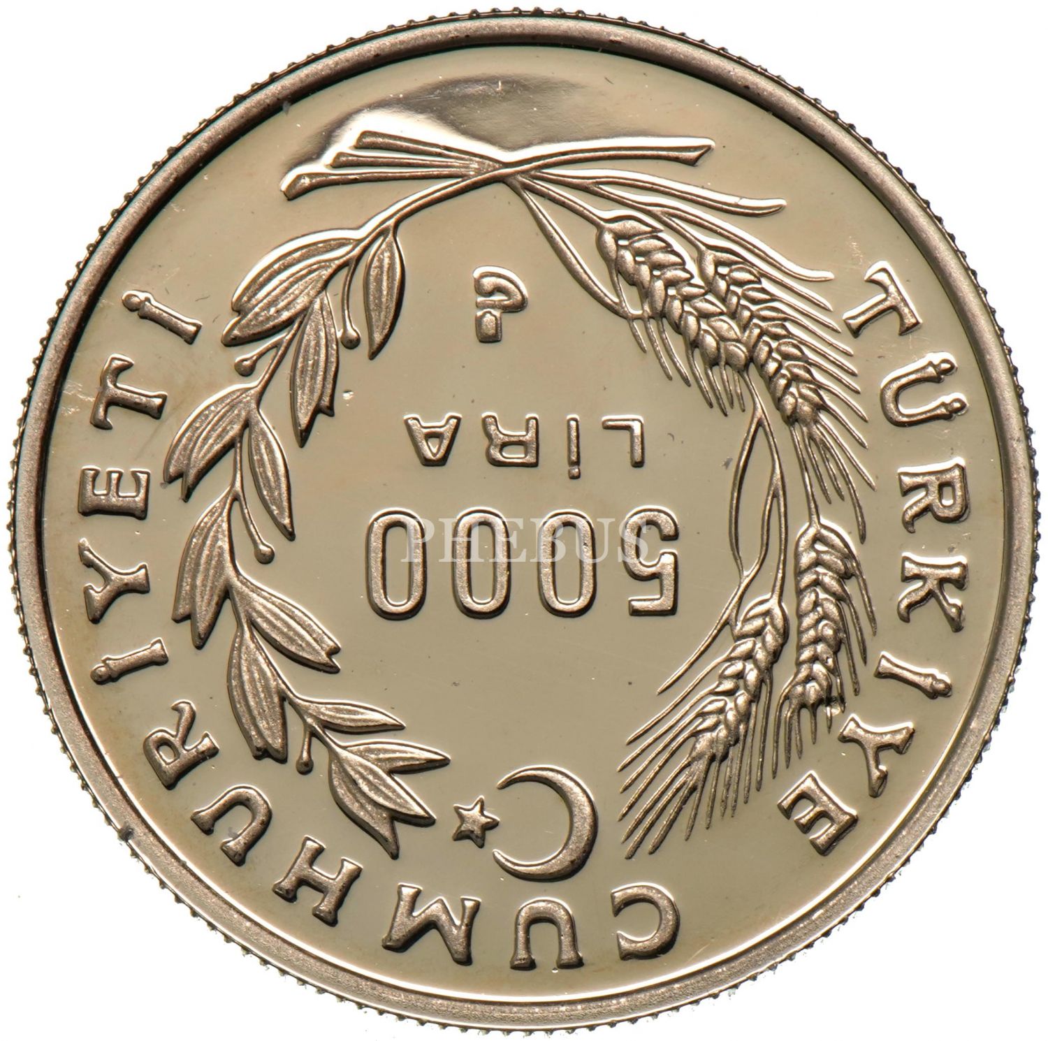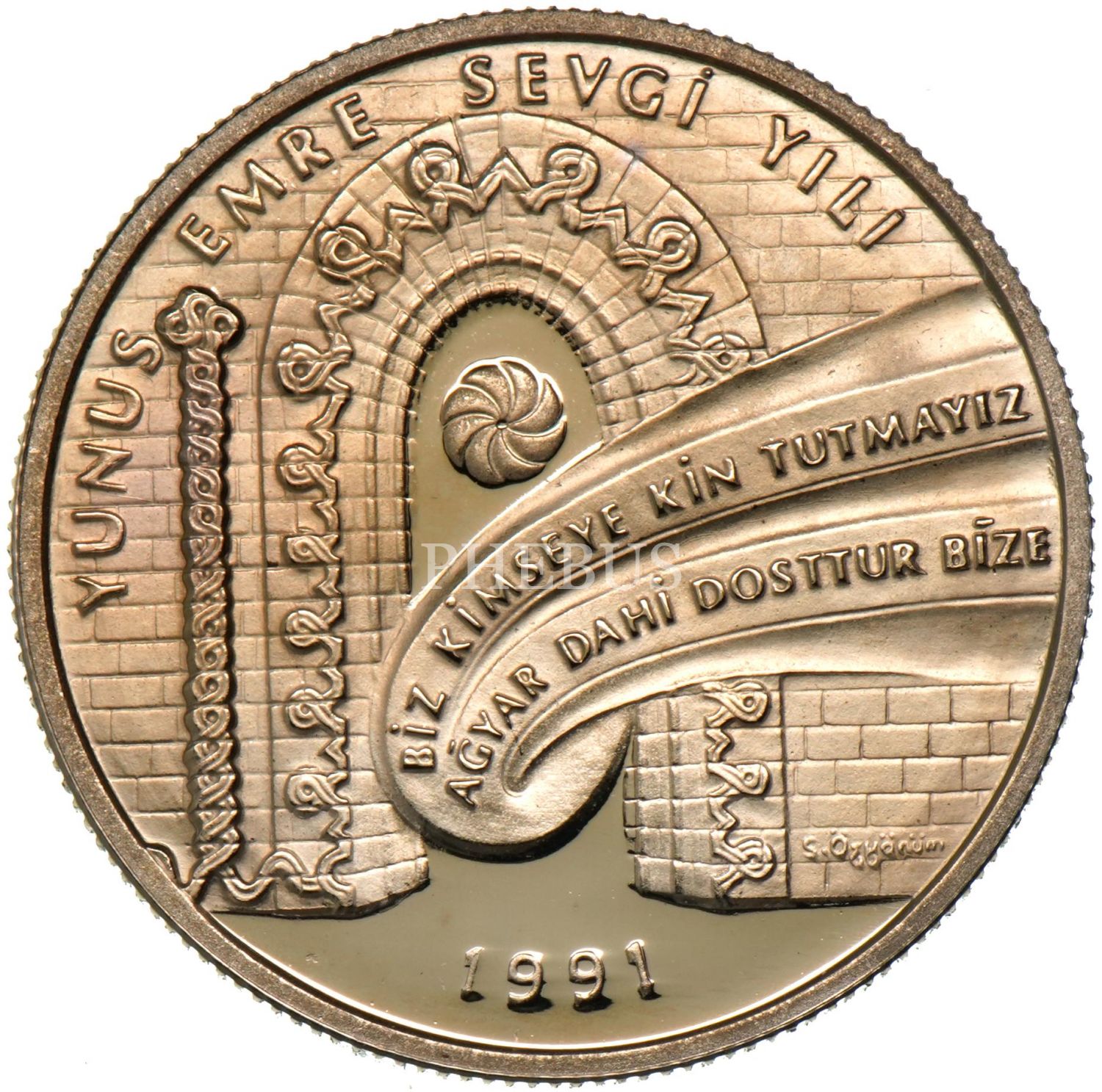 1991 Yunus Emre Sevgi Yılı 5000 lira NORMAL BASKI (Proof Bakır/Nikel) TR#H139