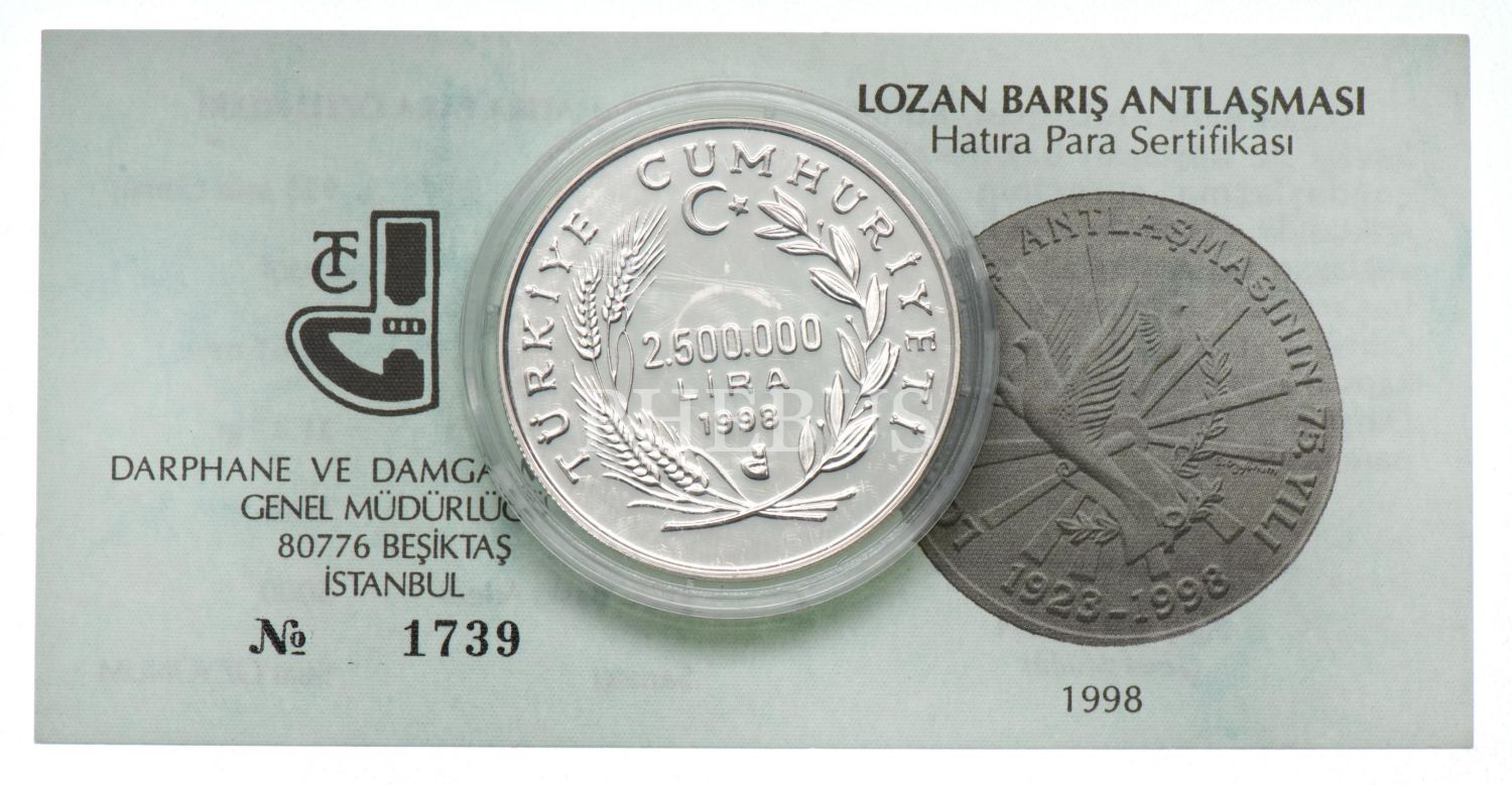 1998 Lozan Barış Antlaşmasının 75. Yılı 2.500.000 Lira (31,47gr 925 ayar, proof gümüş) TR#H207