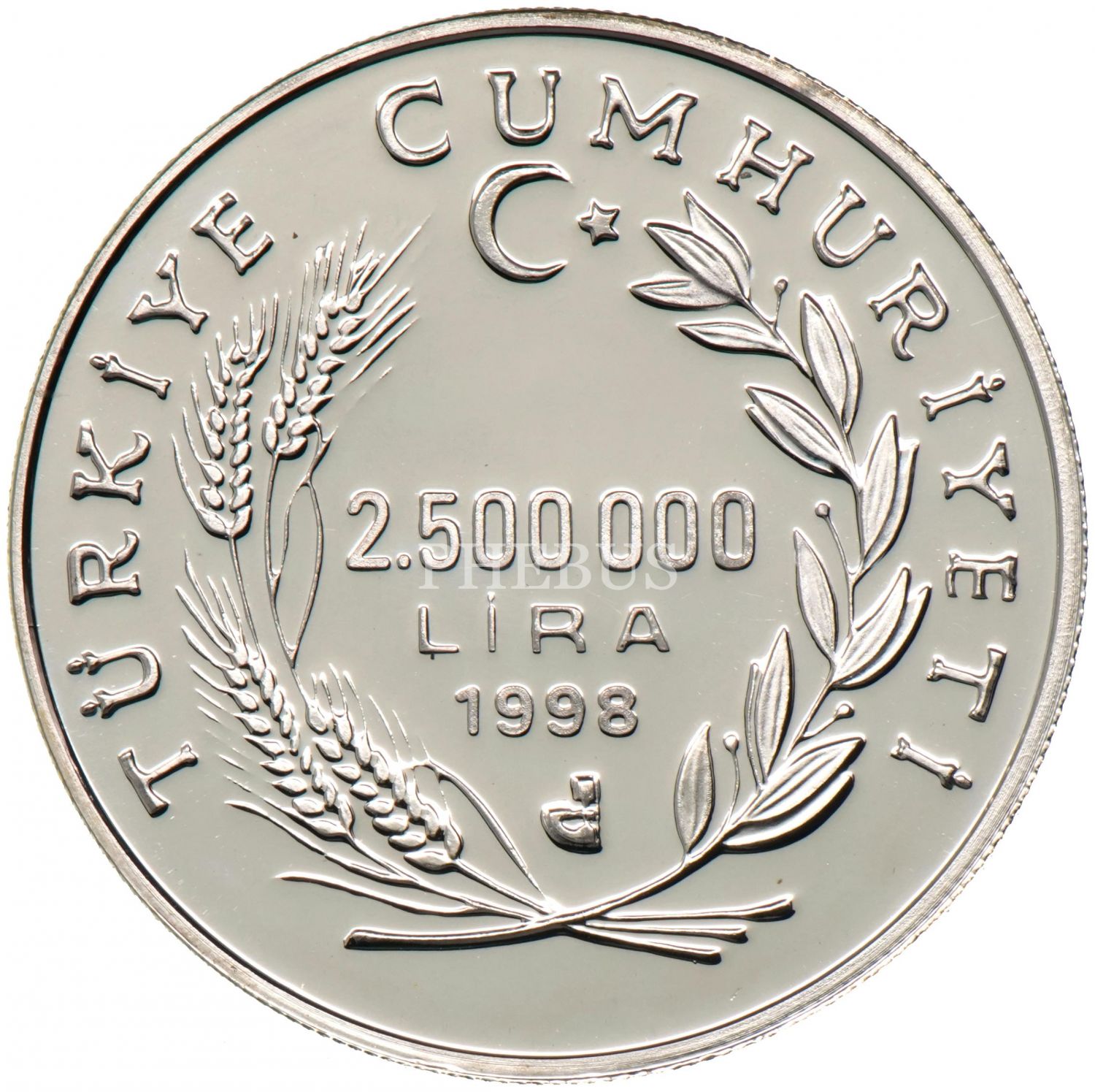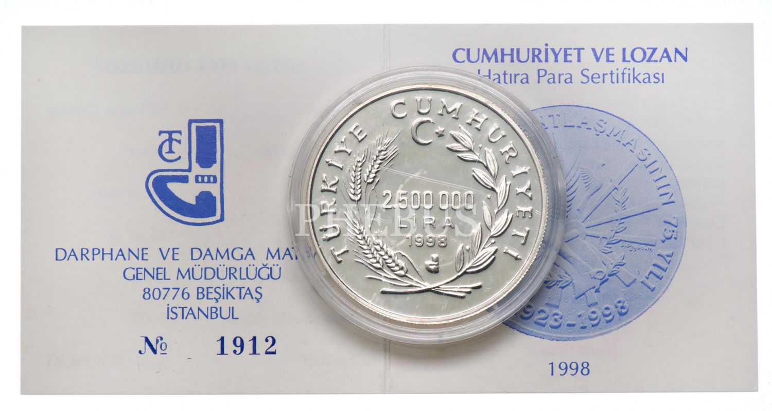 1998 Lozan Barış Antlaşmasının 75. Yılı 2.500 000 Lira (31,47gr 925 ayar, proof gümüş) TR#H207