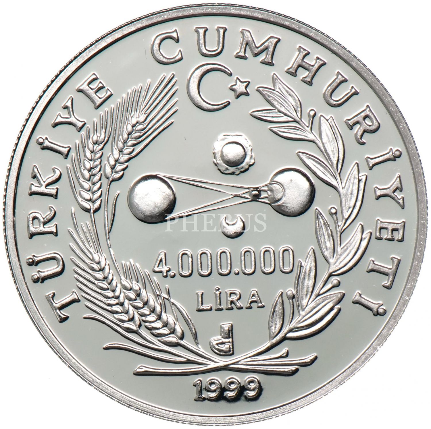 1999 Tam Güneş Tutulması-2 İnsanlar 4.000.000 Lira (31,47gr 925 ayar gümüş) TR#H228