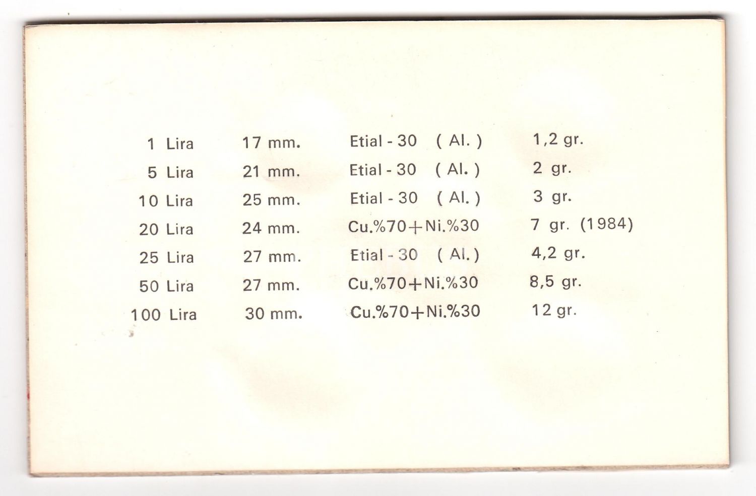 1980-1988 yılları arasında resmi Darphane seti çıkartılmadığından Dündar Nümismatik tarafından hazırlanan özel setlerden - 1986 tedavül paraları seti
