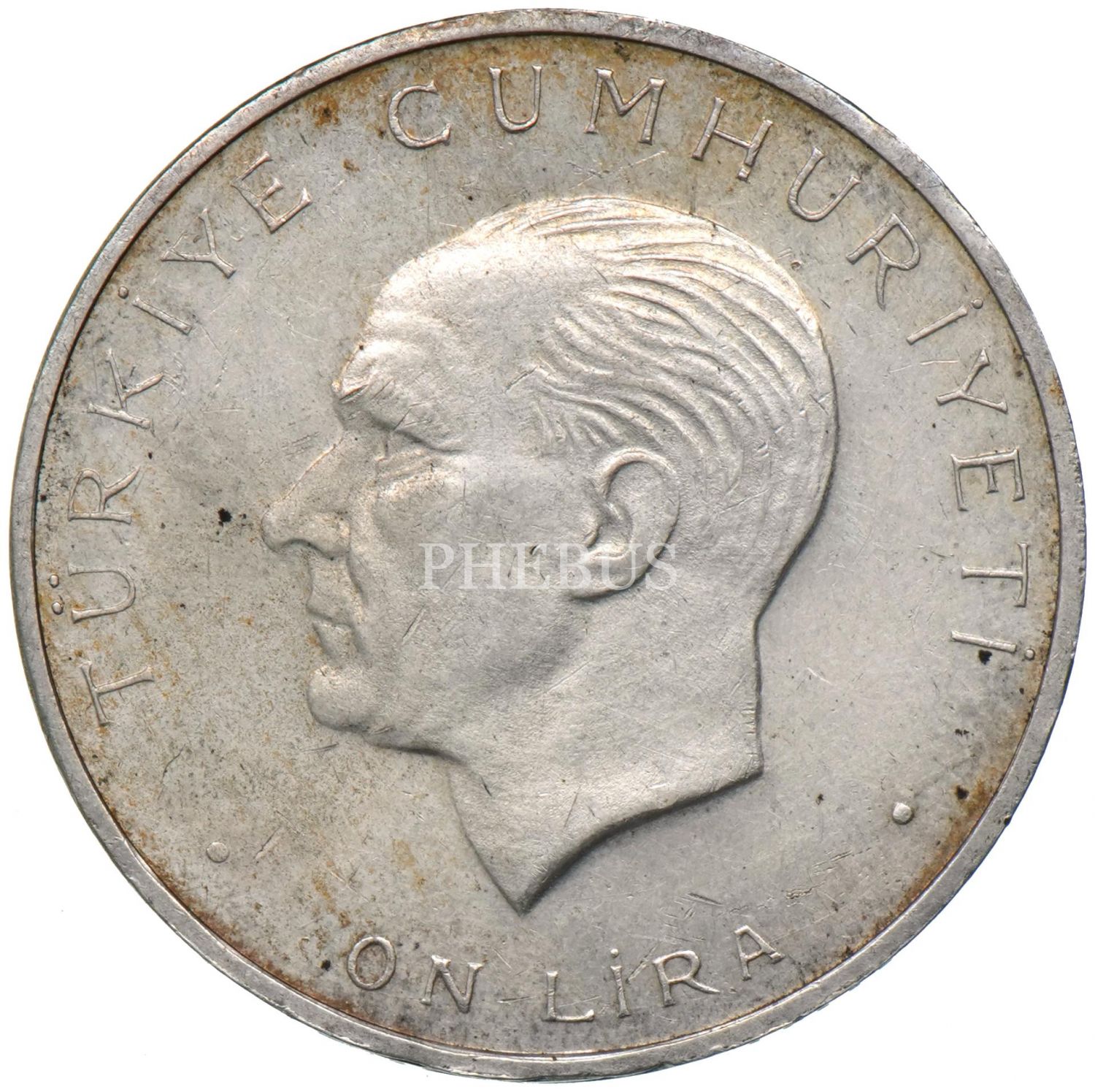 10 Lira 1960 Hakimiyet Milletindir 27 Mayıs 1960 - Kenar Yazısı Tura Yüzüne Göre DÜZ (34mm, 15gr 830 Ayar Gümüş) KM#894