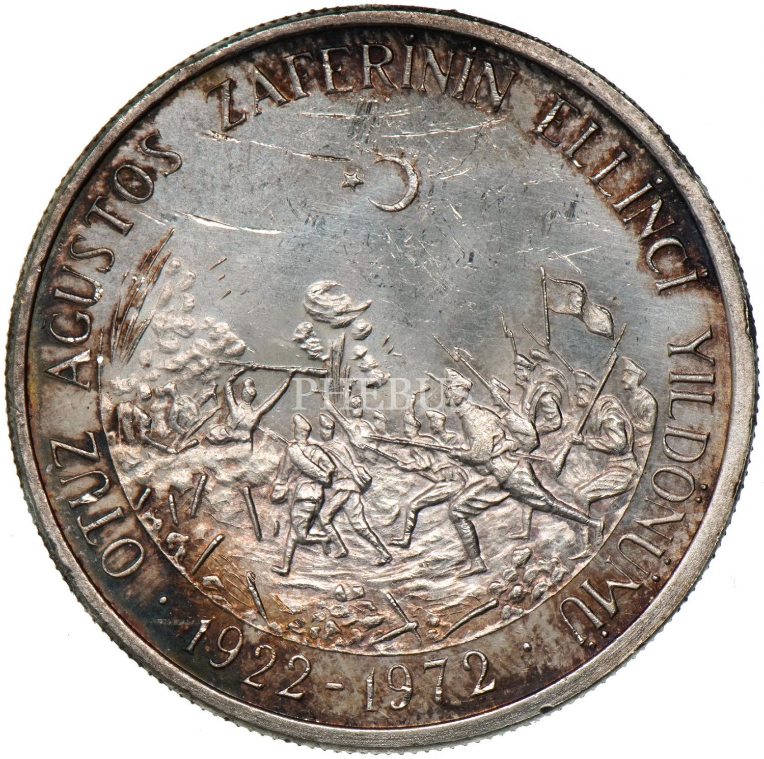 1972 30 Ağustos Zaferi´nin 50. Yılı 50 Lira (20gr. 900 ayar gümüş) TR#H008 - Zamanında Darphane tarafından sertifikasız olarak piyasaya verilmiştir