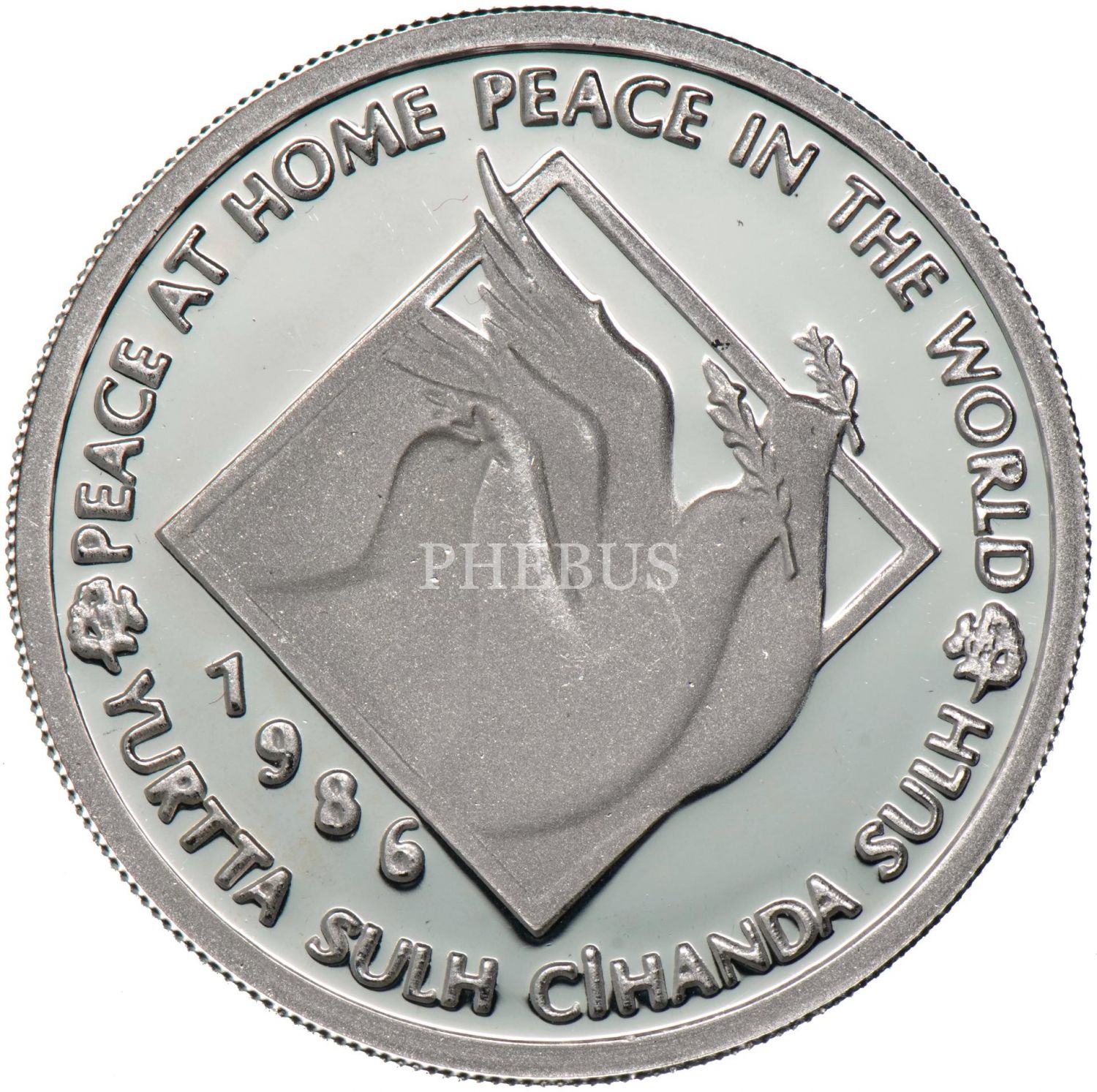 1986 Dünya Barış Yılı Yurtta Sulh Cihanda Sulh 10.000 Lira (23,3gr 925 ayar, proof gümüş) TR#H114 - Zamanında Darphane tarafından sertifikasız olarak piyasaya verilmiştir