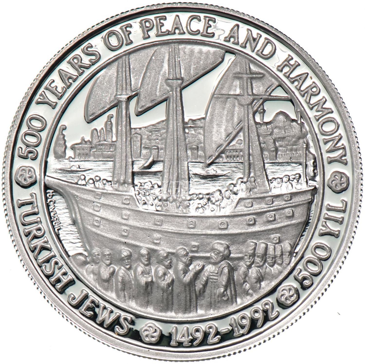 1992 Yahudilerin Göçünün 500. Yılı 50.000 Lira (23,33gr 925 ayar, proof gümüş) TR#H150 - Zamanında Darphane tarafından sertifikasız olarak piyasaya verilmiştir - Baskı adedi 2813