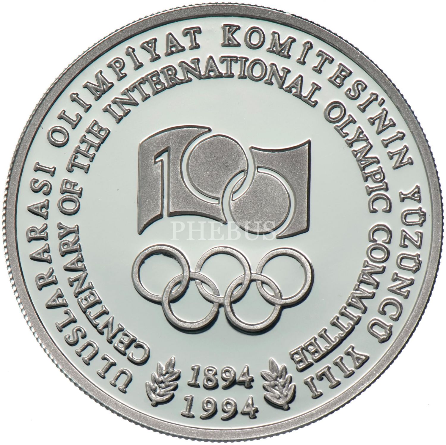 1994 Olimpiyat Komitesi´nin 100. Yılı 1894-1994 50.000 Lira (23,33gr 925 ayar, proof gümüş) TR#H163 - Zamanında Darphane tarafından sertifikasız olarak piyasaya verilmiştir