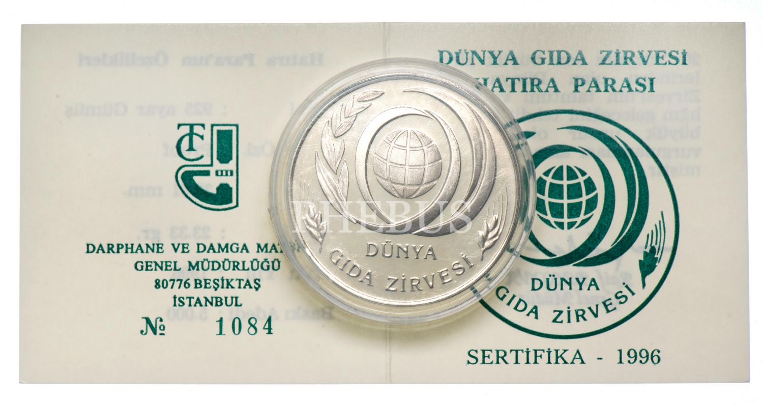 1996 FAO 750.000 Lira Dünya Gıda Zirvesi Başak Solda (23,33gr 925 ayar, proof gümüş) TR#H183