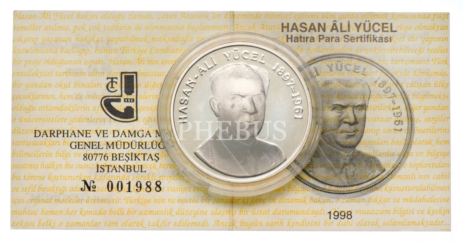 1998 Hasan Ali Yücel 2.500.000 Lira (31,47gr 925 ayar, proof gümüş) TR#H205