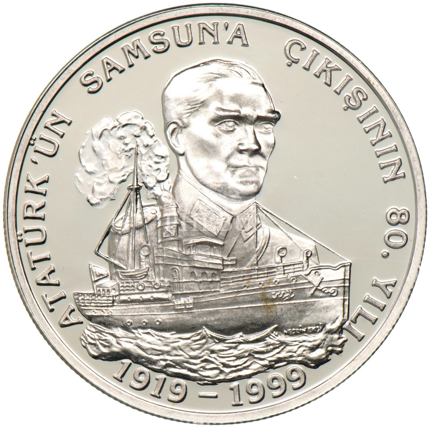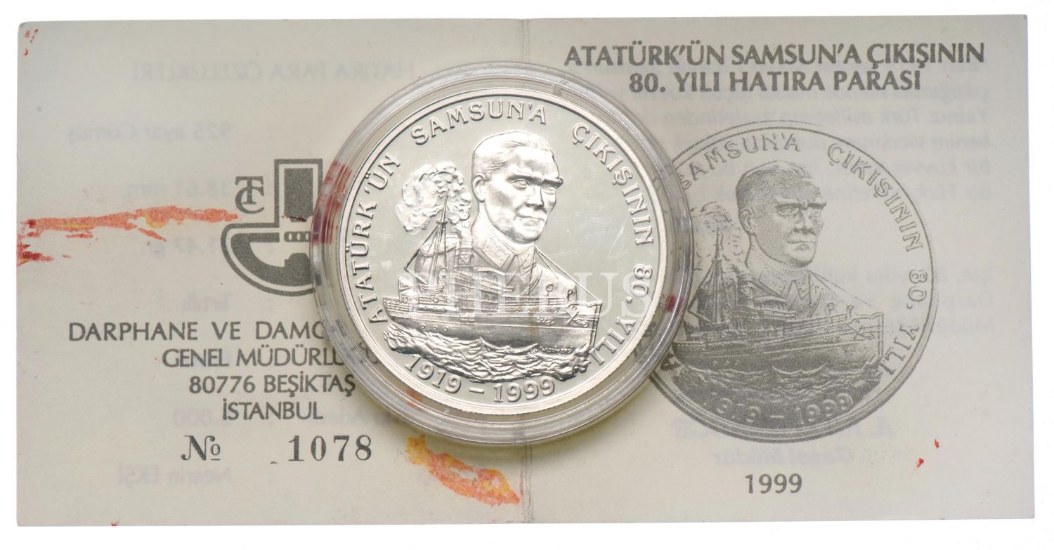 1999 19 Mayıs 1999 Atatürk´ün Samsun´a Çıkışının 80.Yılı 4.000.000 Lira (31,47gr 925 ayar, proof gümüş) TR#H222 - Satış adedi 1932