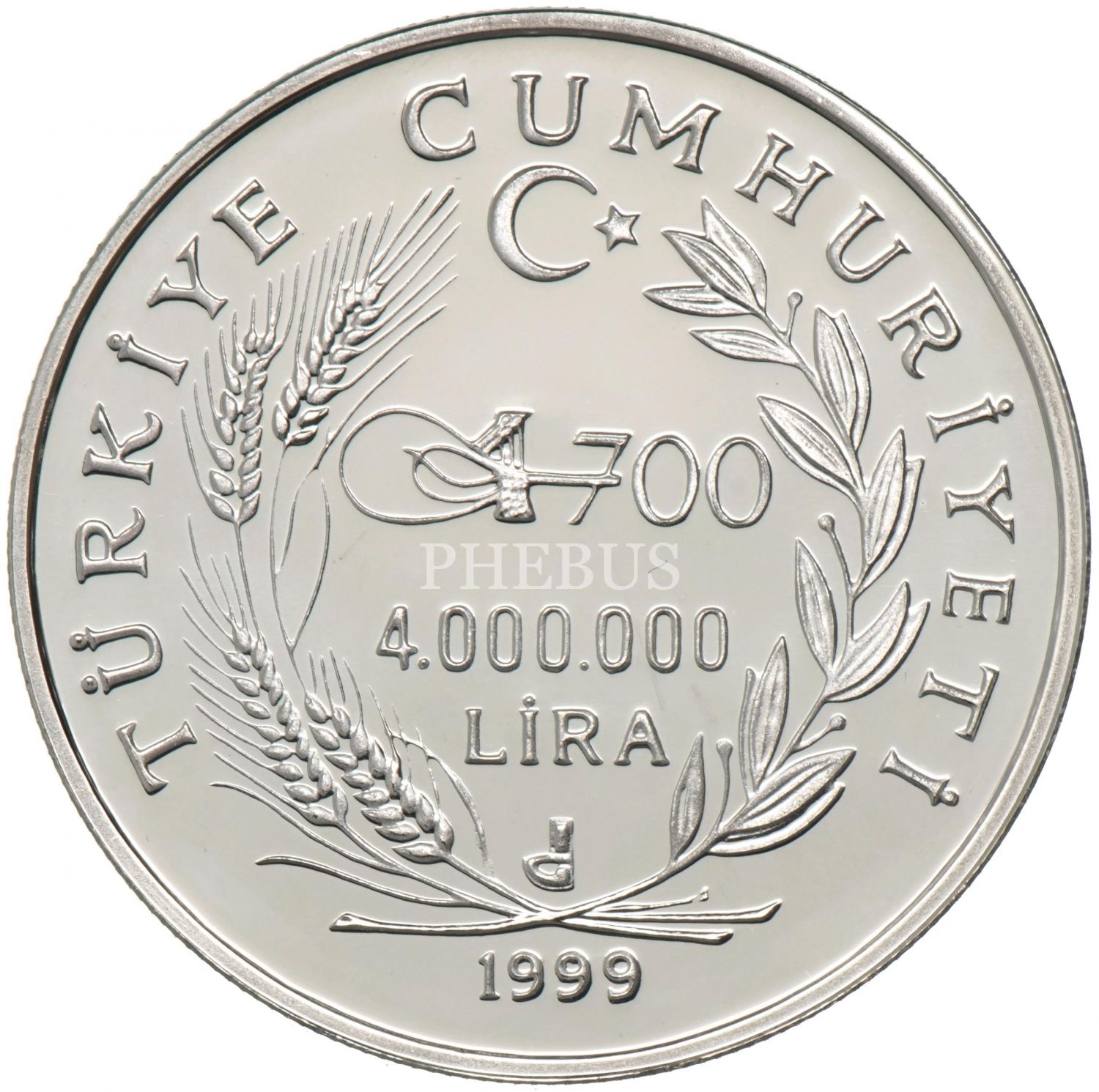 1999 Fatih Sultan Mehmed 4.000.000 Lira (31,47gr 925 ayar, proof gümüş) TR#H231