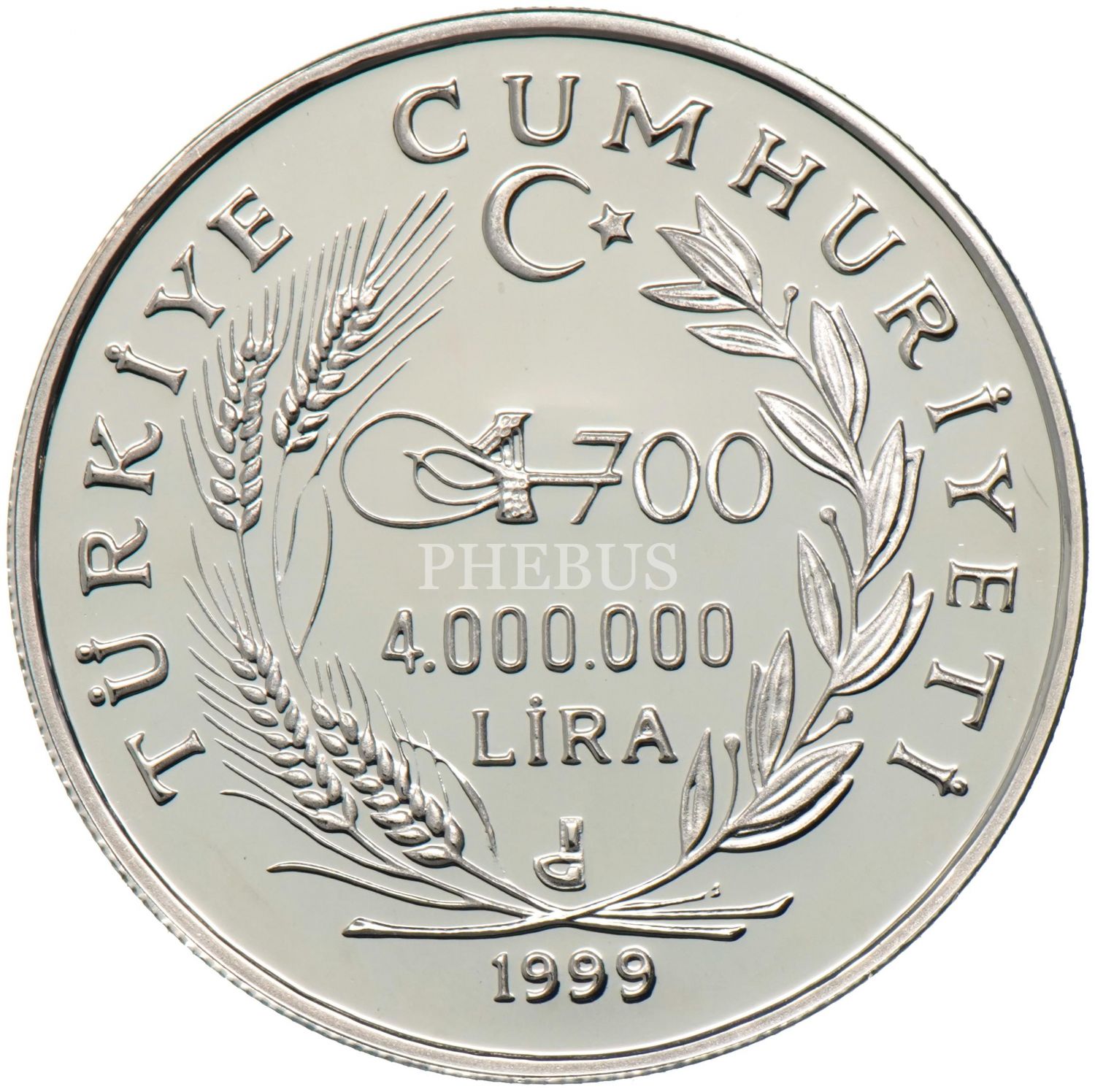 1999 Osman Gazi 4.000.000 Lira (31,47gr 925 ayar, proof gümüş) TR#H229