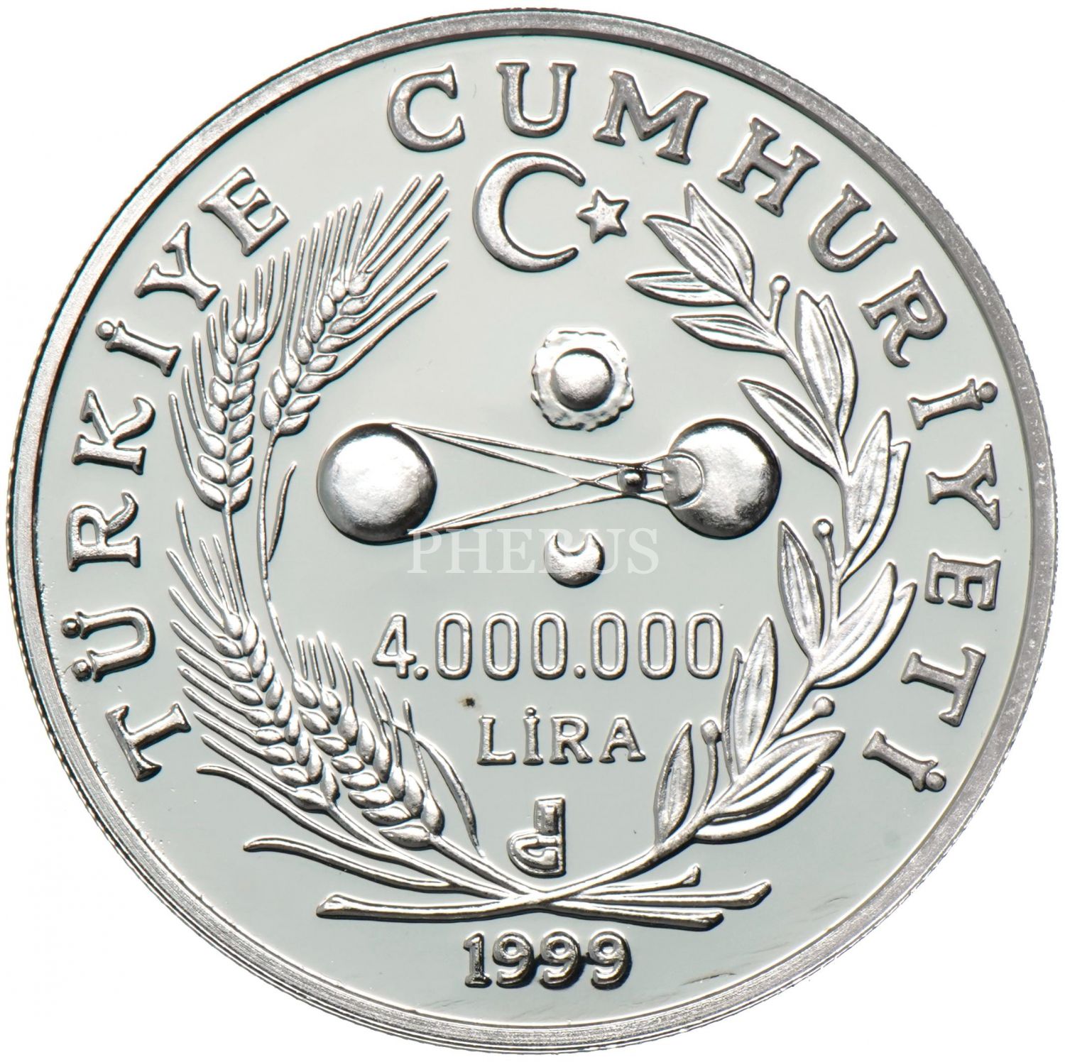 1999 Tam Güneş Tutulması-2 İnsanlar 4.000.000 Lira (31,47gr 925 ayar gümüş) TR#H228