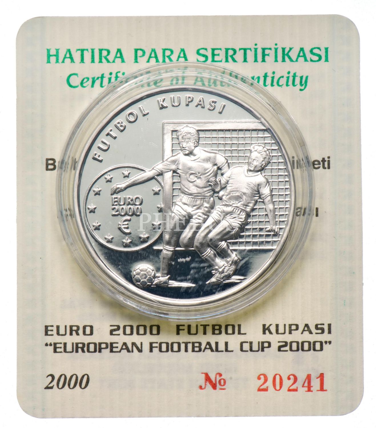 2000 Euro 2000 Futbol Kupası Euro Serisi No:9 (Madalyon Baskı) 7.500.000 Lira (31,47gr 925 ayar, proof gümüş) TR#H252.2