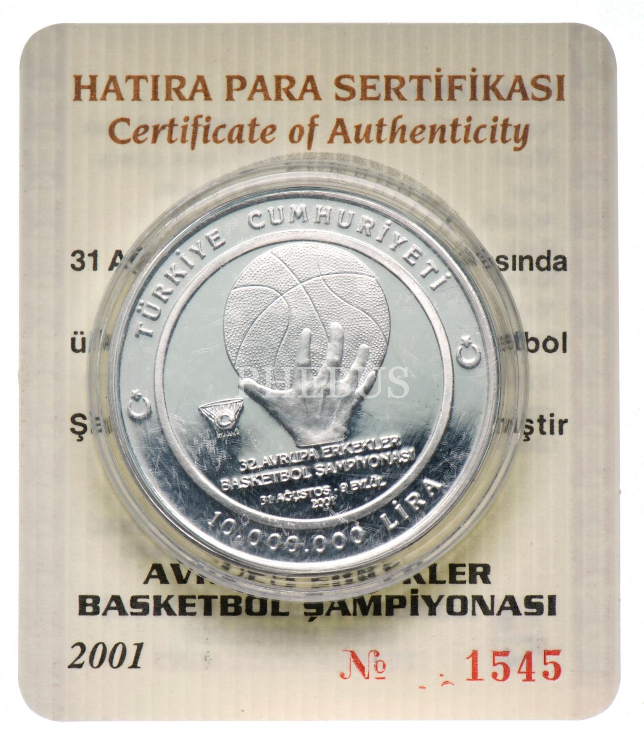 2001 32. Avrupa Erkekler Basketbol Şampiyonası 10.000.000 Lira (31,47gr 925 ayar, proof gümüş) TR#H261