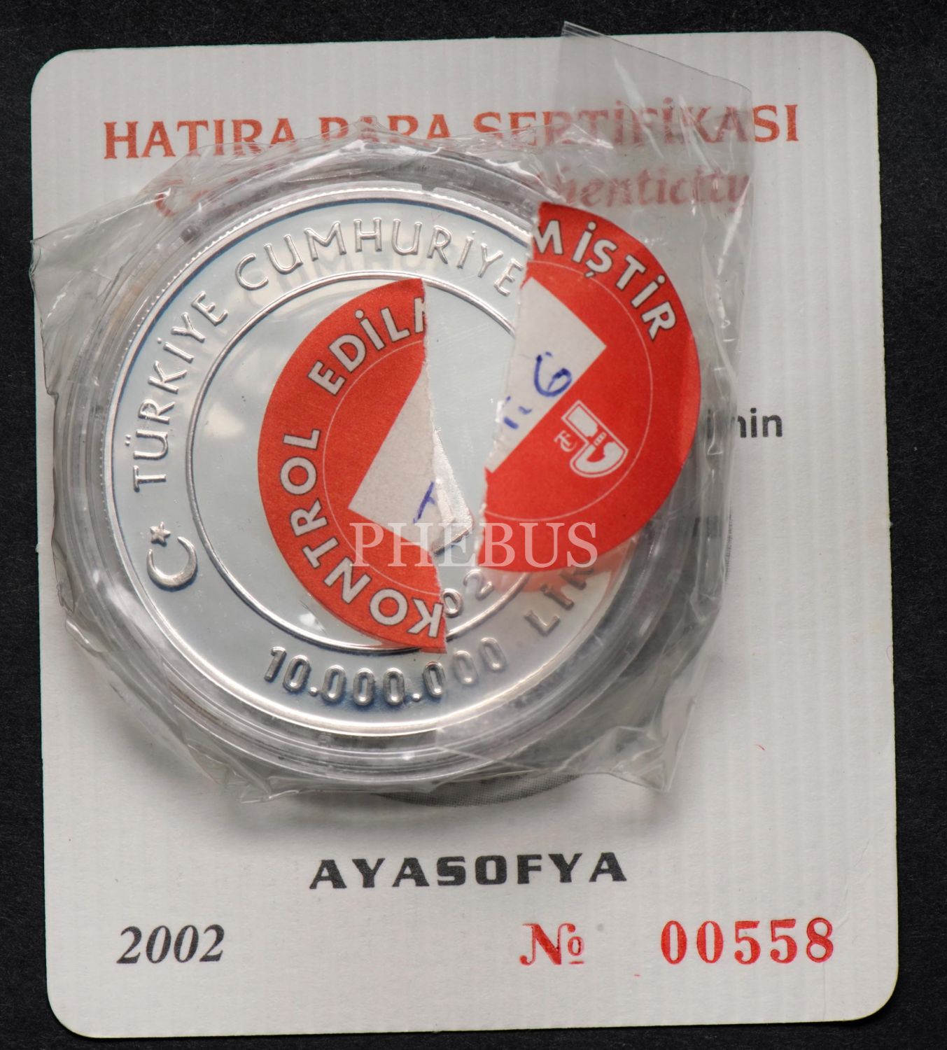 2002 Kültür Varlıkları Serisi No:2 Ayasofya 10.000.000 Lira (31,47gr 925 ayar, proof gümüş) TR#H290