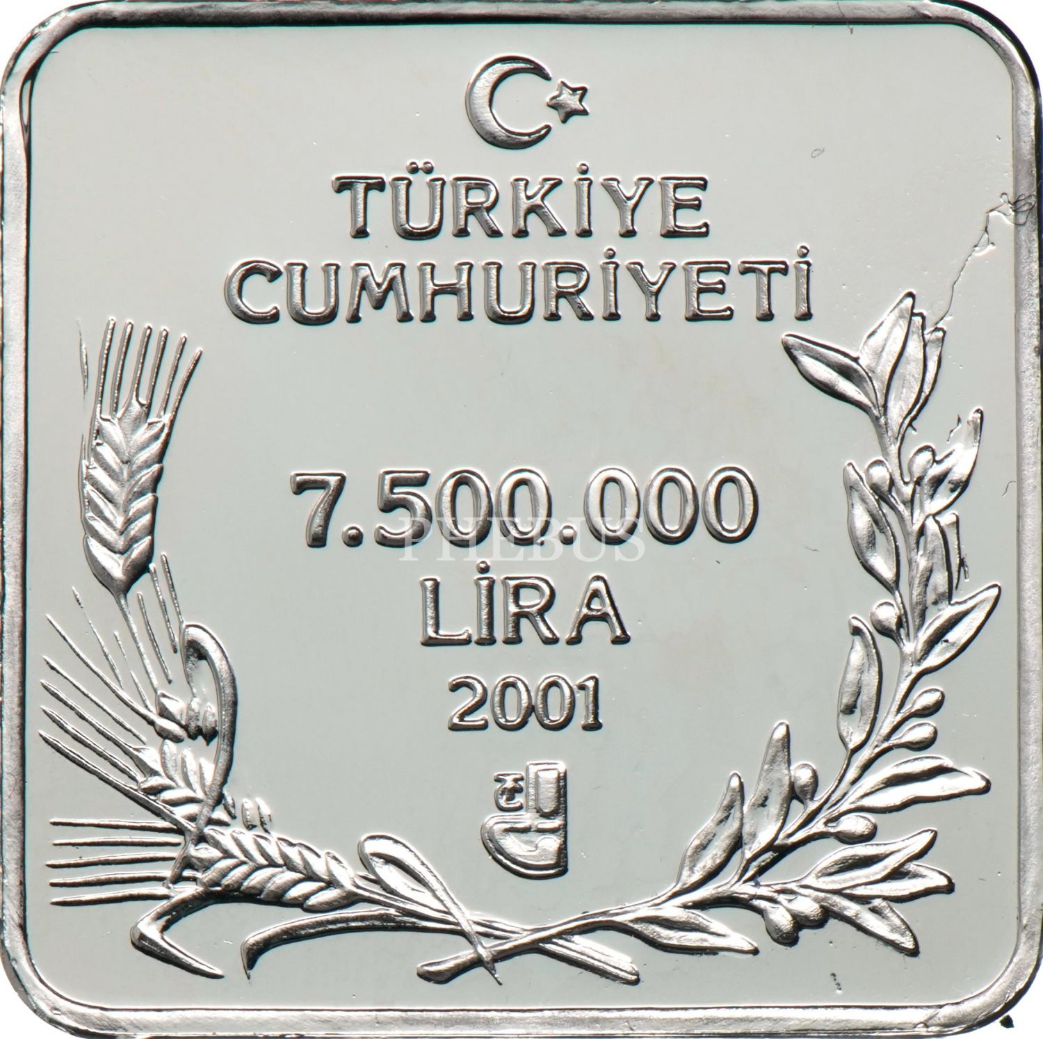 2001 Türkiye´nin Kuşları - Turaç 7.500.000 Lira (15,55gr 925 ayar, proof gümüş) TR#H276
