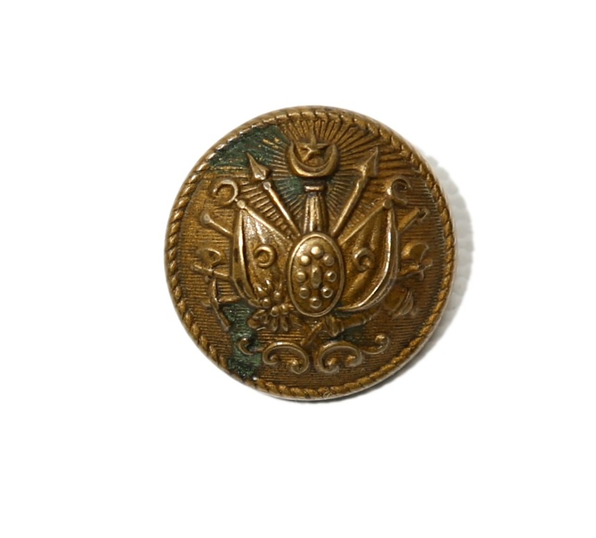 Osmanlı devlet armalı, arkası Osmanlıca yazılı askeri kol düğmesi, 1,5 cm