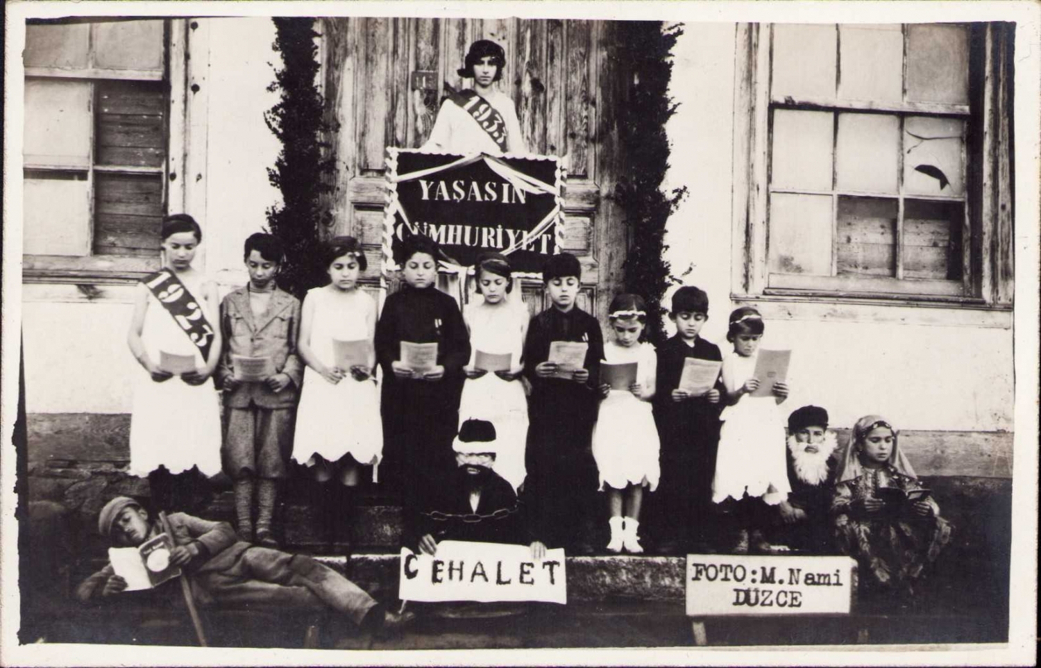 Düzce'de mektep talebelerinin Cumhuriyetin 10. yılı kutlamaları için hazırladıkları gösterilere ait fotoğraf lotu, Foto M. Nami Düzce, 5 adet