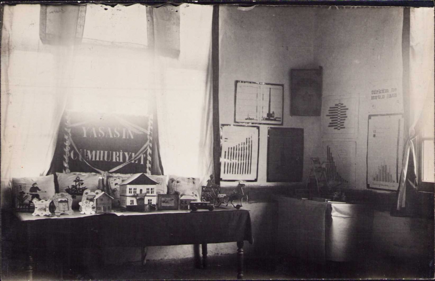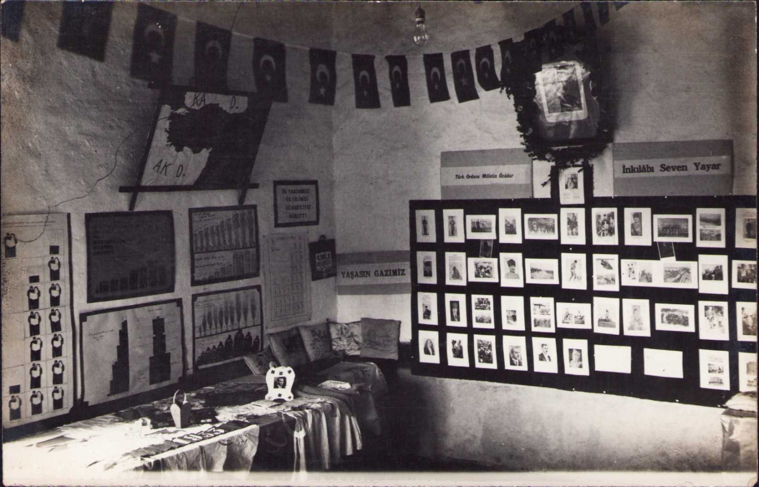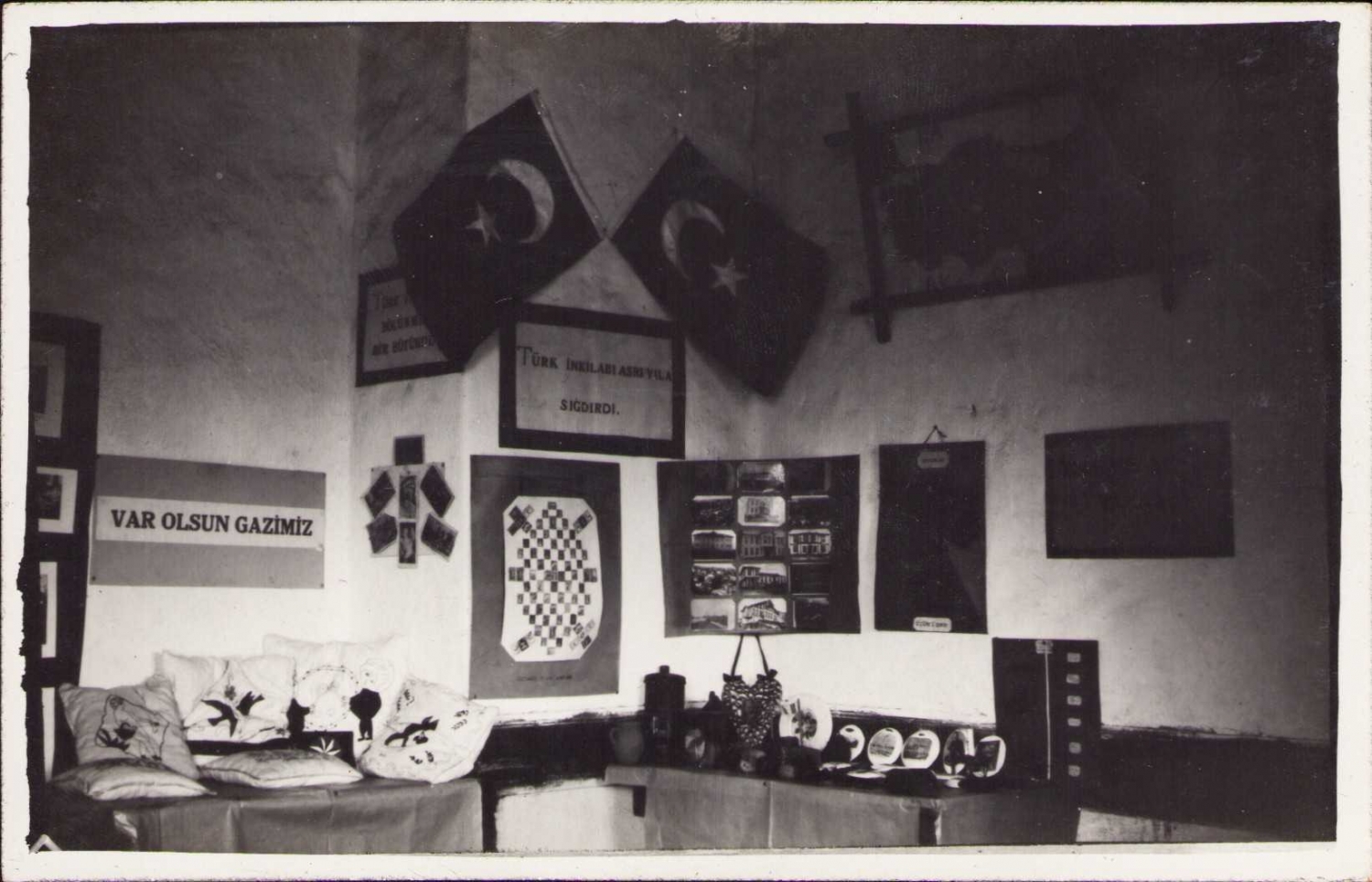 pankartlar: "Cehalet" "Yaşasın Cumhuriyet" "Var Olsun Gazimiz""Türk İnkılabı Asrı Yıla Sığdırdı" "İnkılabı Seven Yayar"