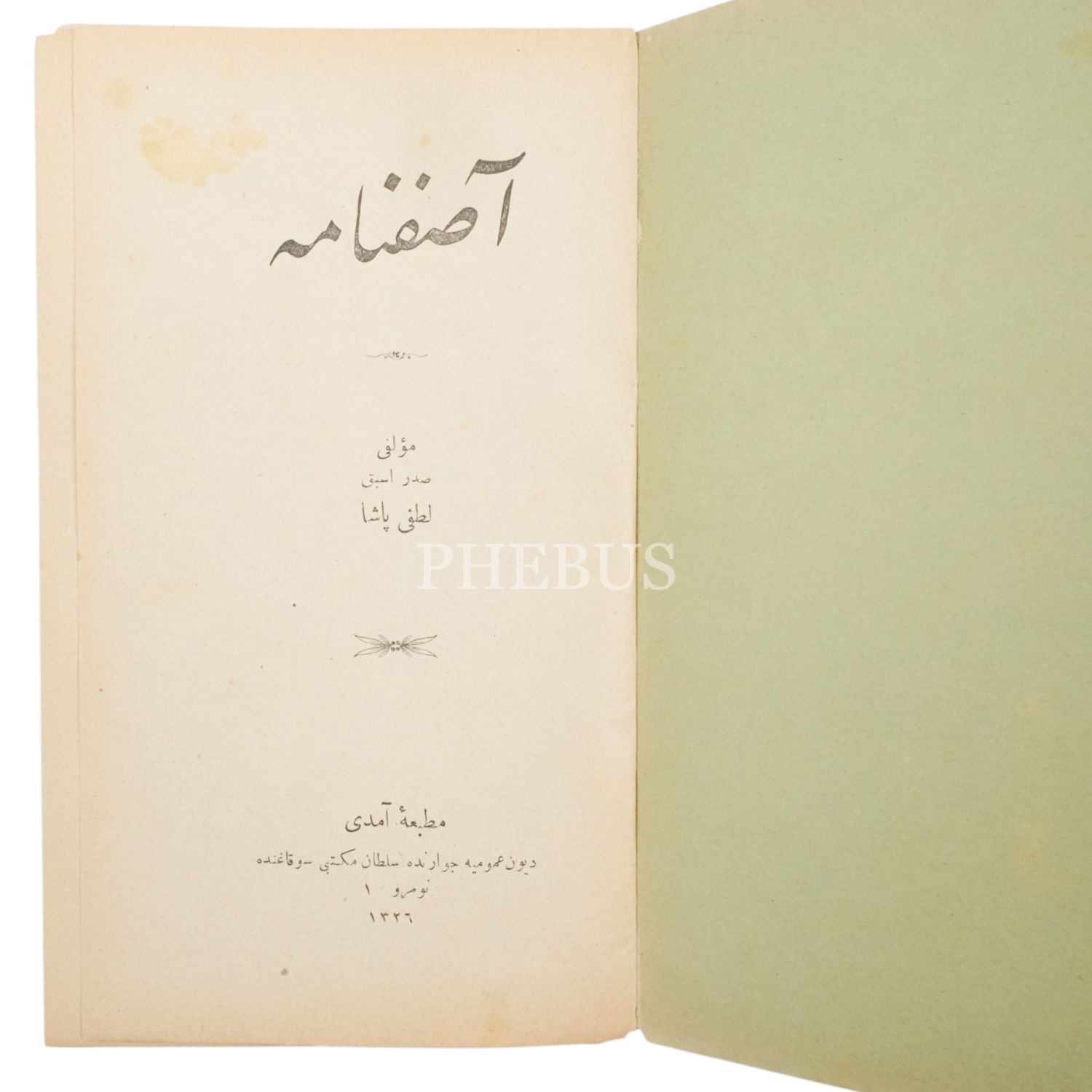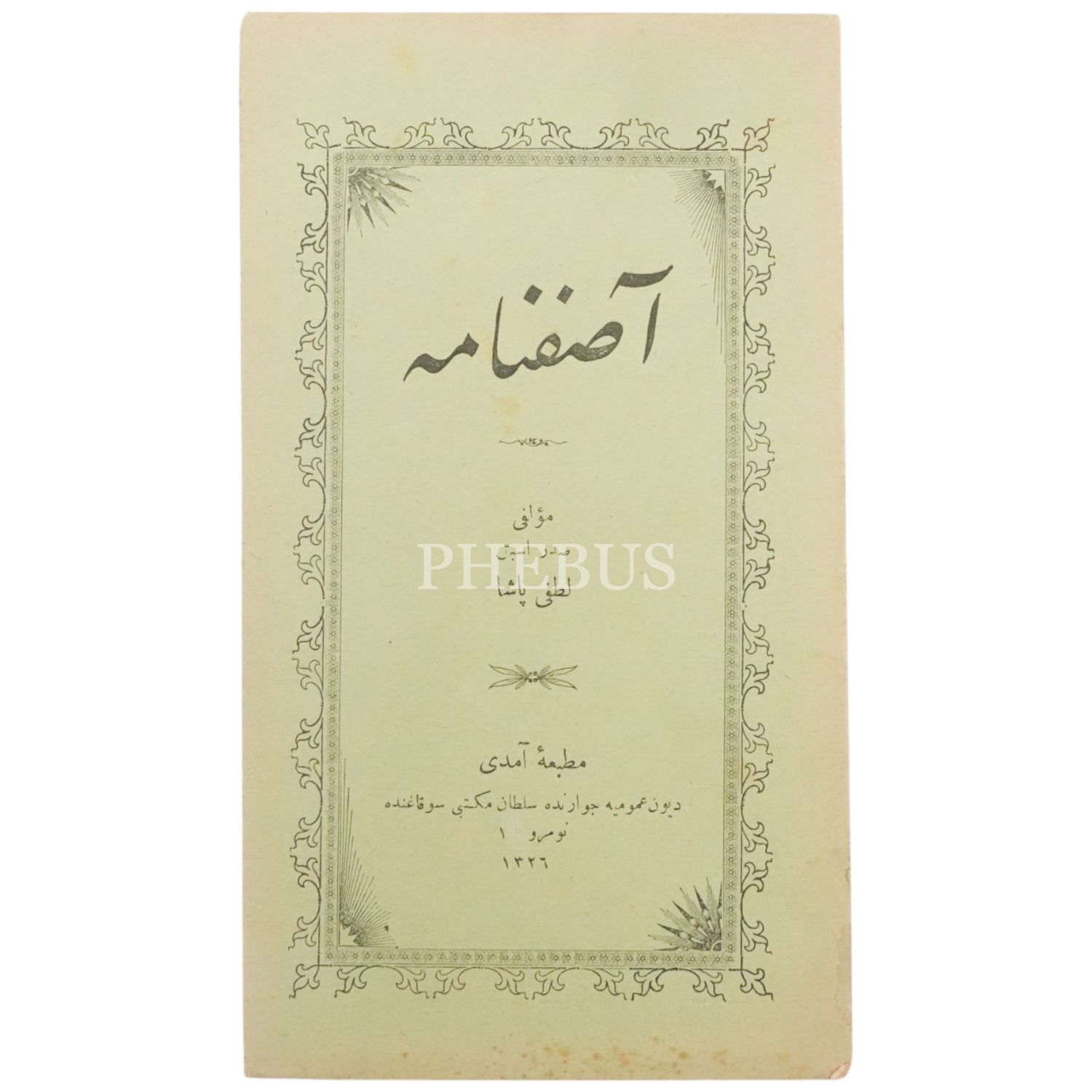 ASAFNAME, Sadrazam Lütfi Paşa, 1326, Matbaa-i Amedi, 26 sayfa, 19x11 cm...
