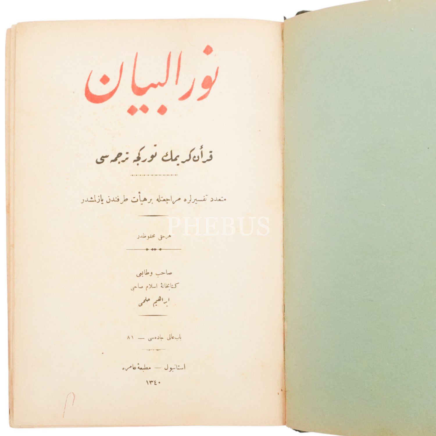 NUR´UL BEYAN, İbrahim Hilmi, 1340, Matbaa-i Amire, 600+12 sayfa, 17x24cm...