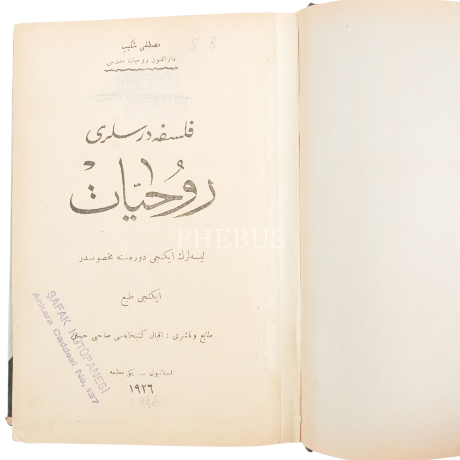 FELSEFE DERSLERİ - RUHİYYAT, Mustafa Şekip, 1926, Yeni Matbaa, 350 sayfa, 15x22 cm...