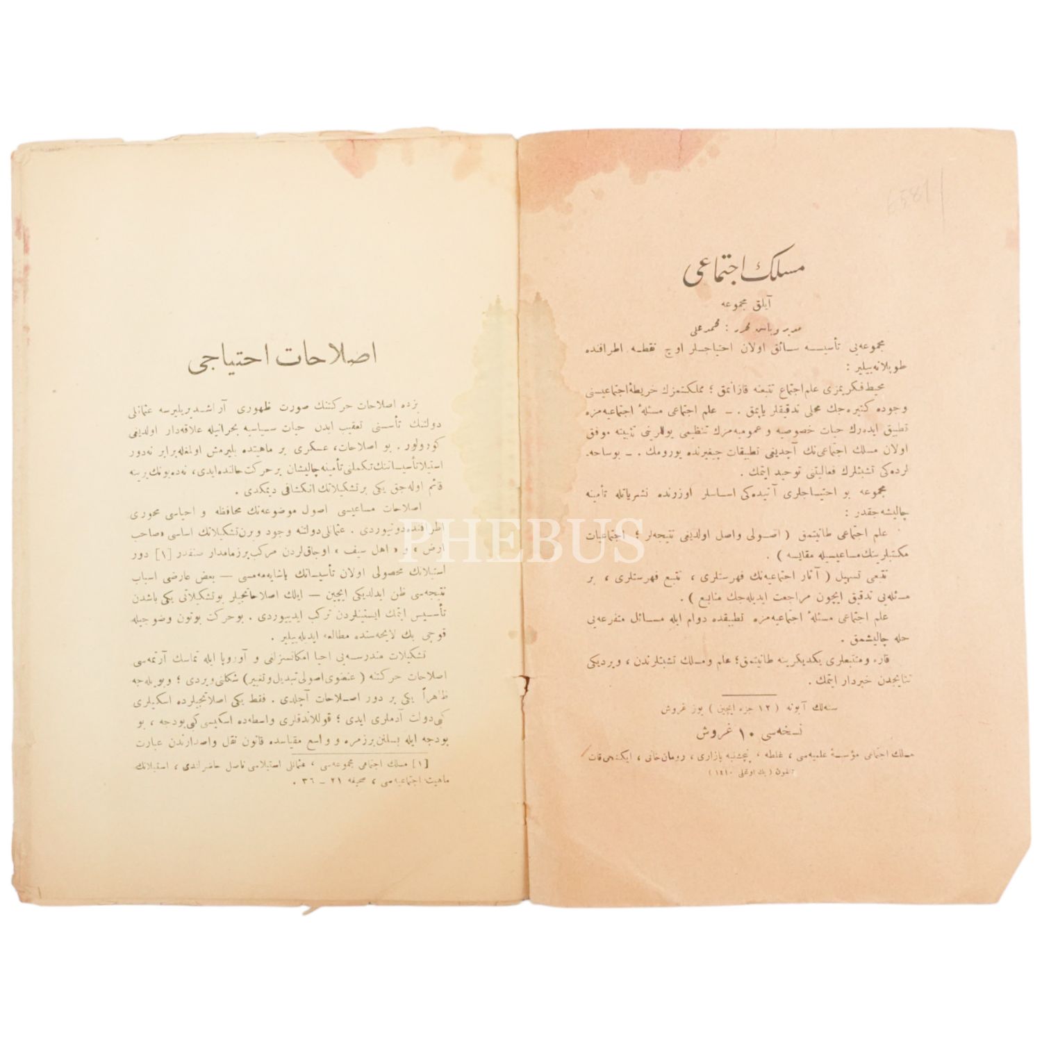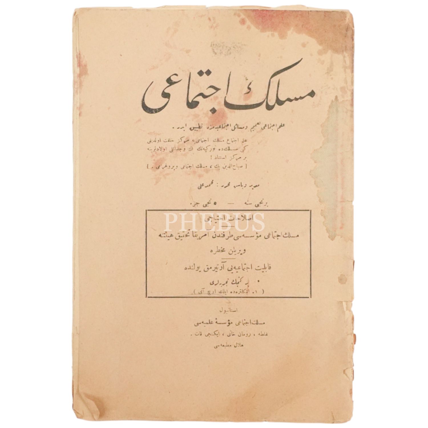 MESLEK-İ İCTİMAİ dergisini ilk sayısı, Müdür ve baş muharriri Mehmed Ali, 17x26 cm...