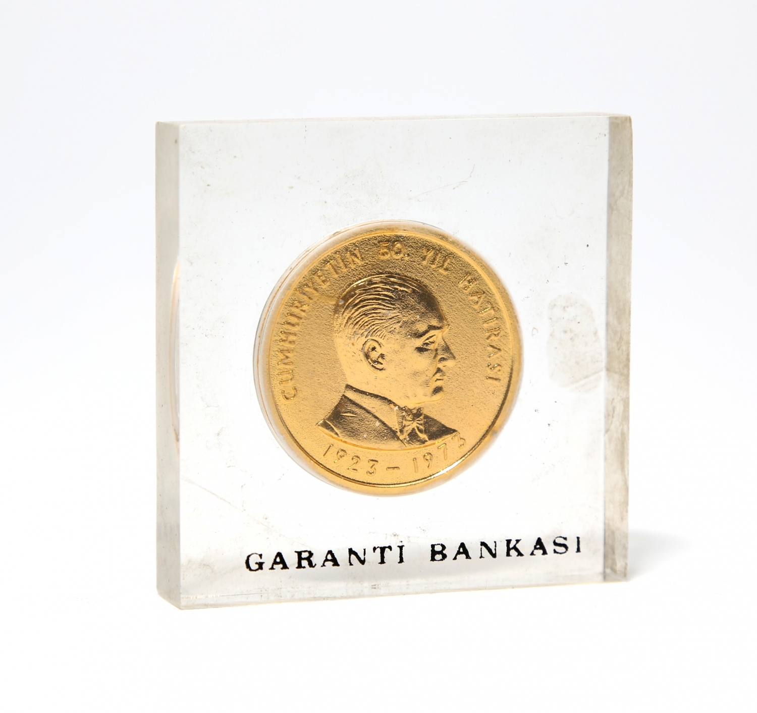 Garanti Bankası Cumhuriyetin 50.yılı hatıra madalyon, Atatürk, 6x6x1 cm