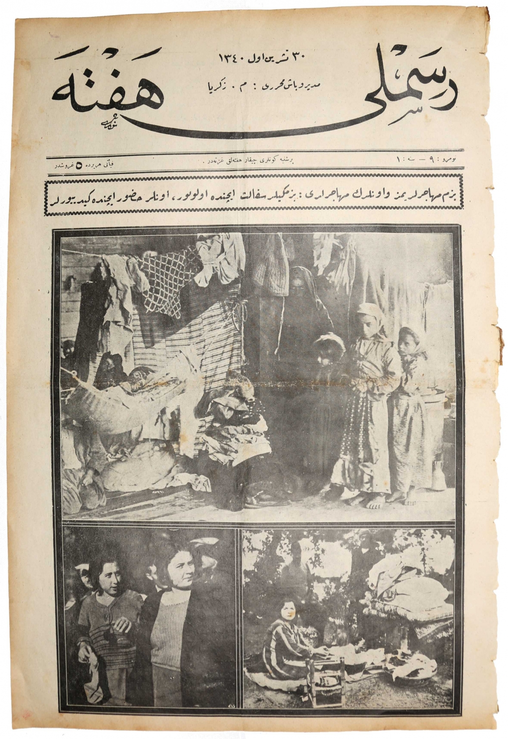 Osmanlıca Resimli Hafta, 1340, kapak "Bizim Muhacirlerimiz ve Onların Muhacirleri: Bizimkiler sefalet içinde onlar huzur içinde gidiyorlar"
