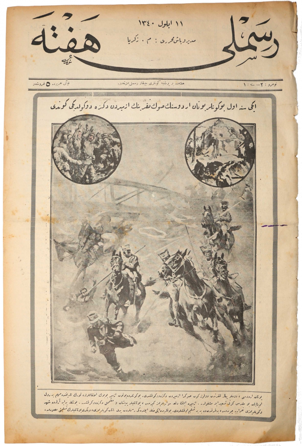 Osmanlıca Resimli Hafta, 1340, kapak "İki sene evvel bu günler Yunan Ordusunun son neferinin İzmirden denize döküldüğü gündü"
