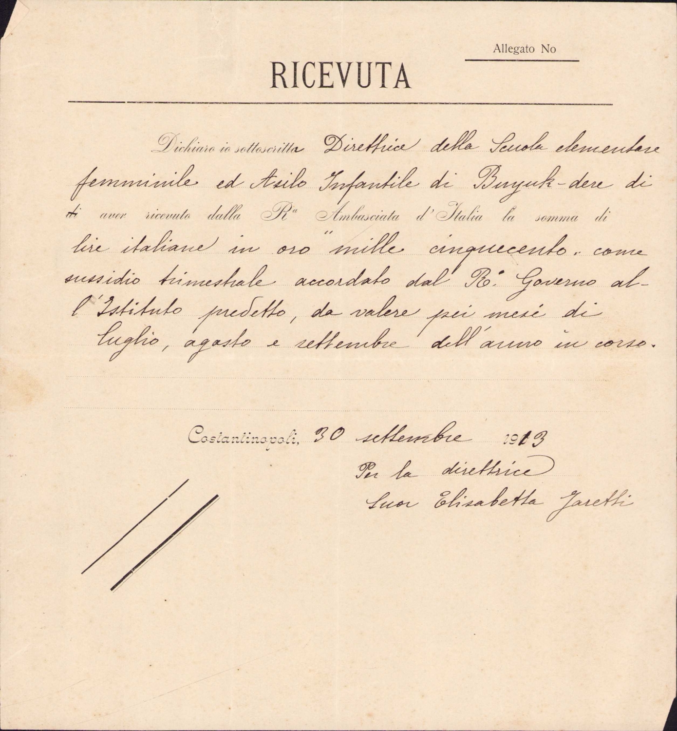 Ricevuta antetli Fransızca 1913 tarihli döküman, Constantinople, 21x23 cm