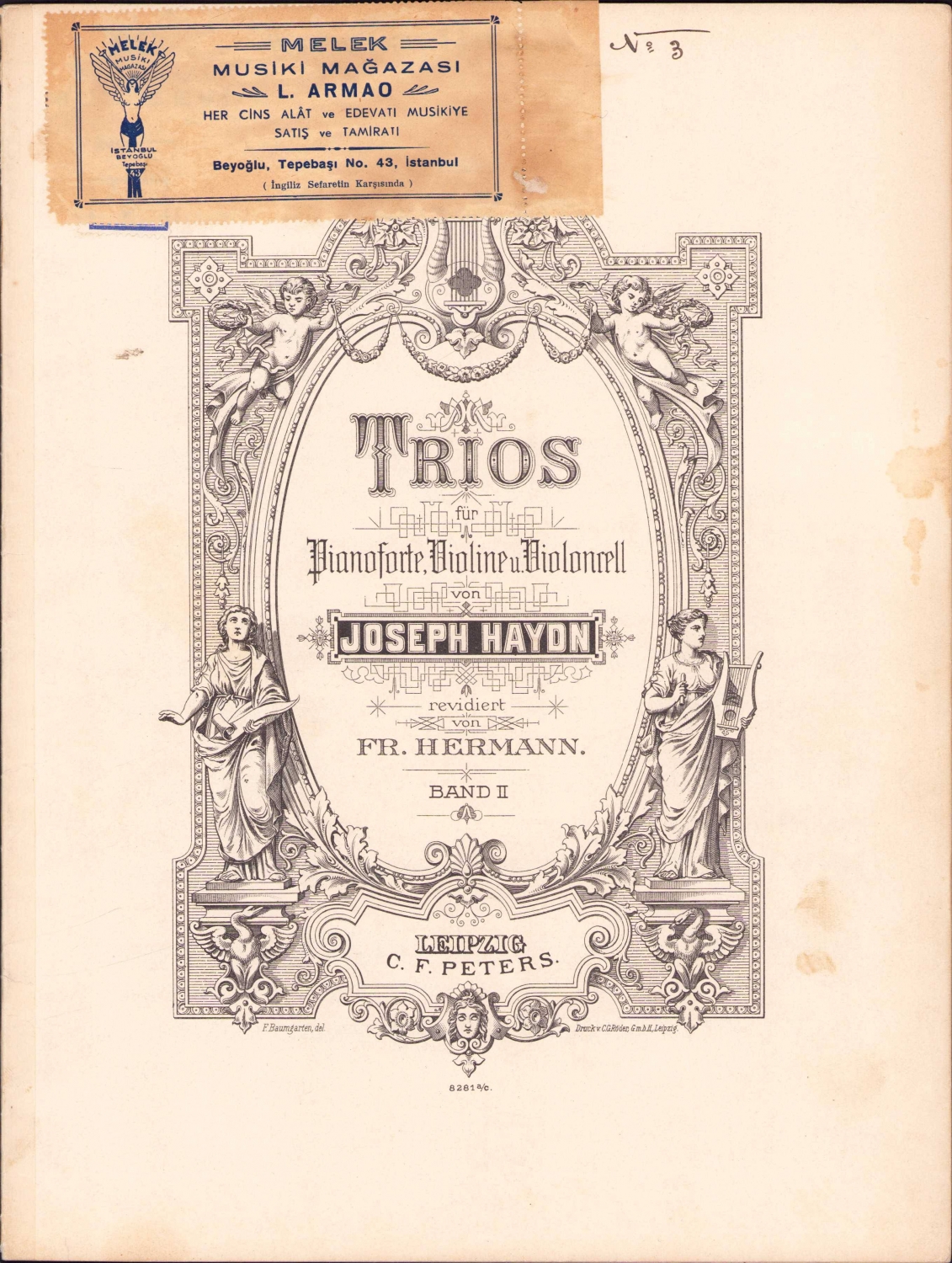 Fransızca nota, Trios - Joseph Haydn, Leipzig baskı, Melek Musiki Mağazası L. Armao etiketli, 33 sayfa, 23x30 cm