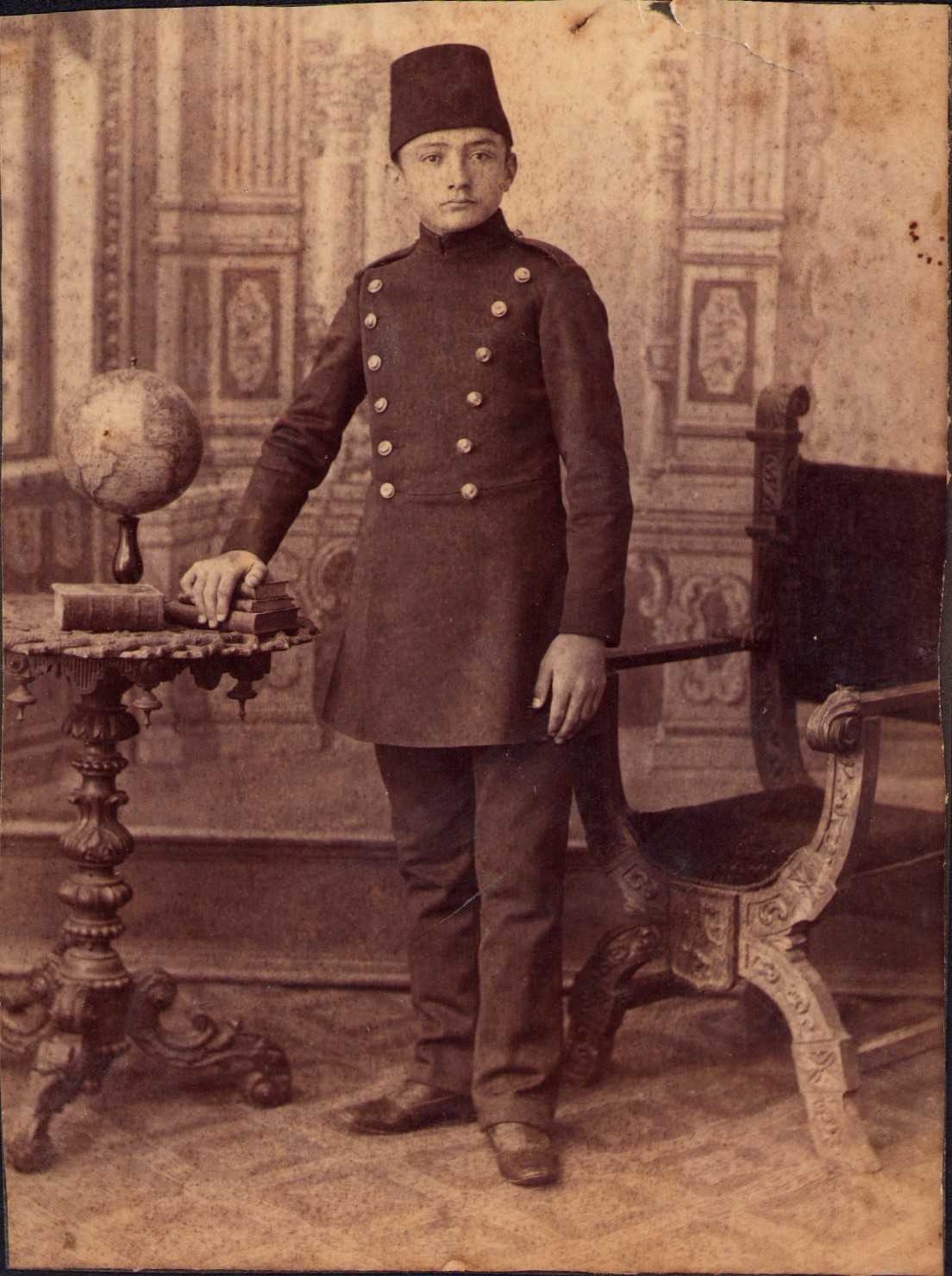 Fesli üniformalı mektep talebesi, kitap, küre detaylı, haliyle