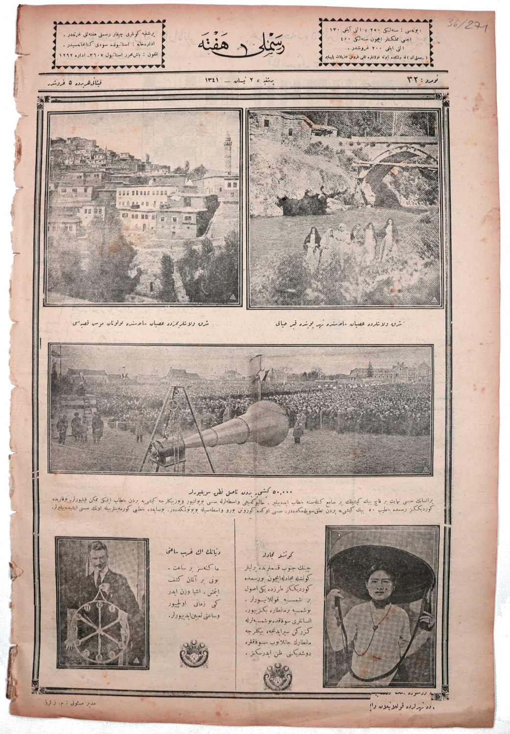 Osmanlıca Resimli Hafta, 1341, kapak " İngiltere'de Seyyar Bir Hayvan Hastanesi: Hayvanlarını tedavi ettirmek isteyenler nöbet bekliyorlar", bir sayfanın kenarı kopuk, 8 sayfa, 30x45 cm