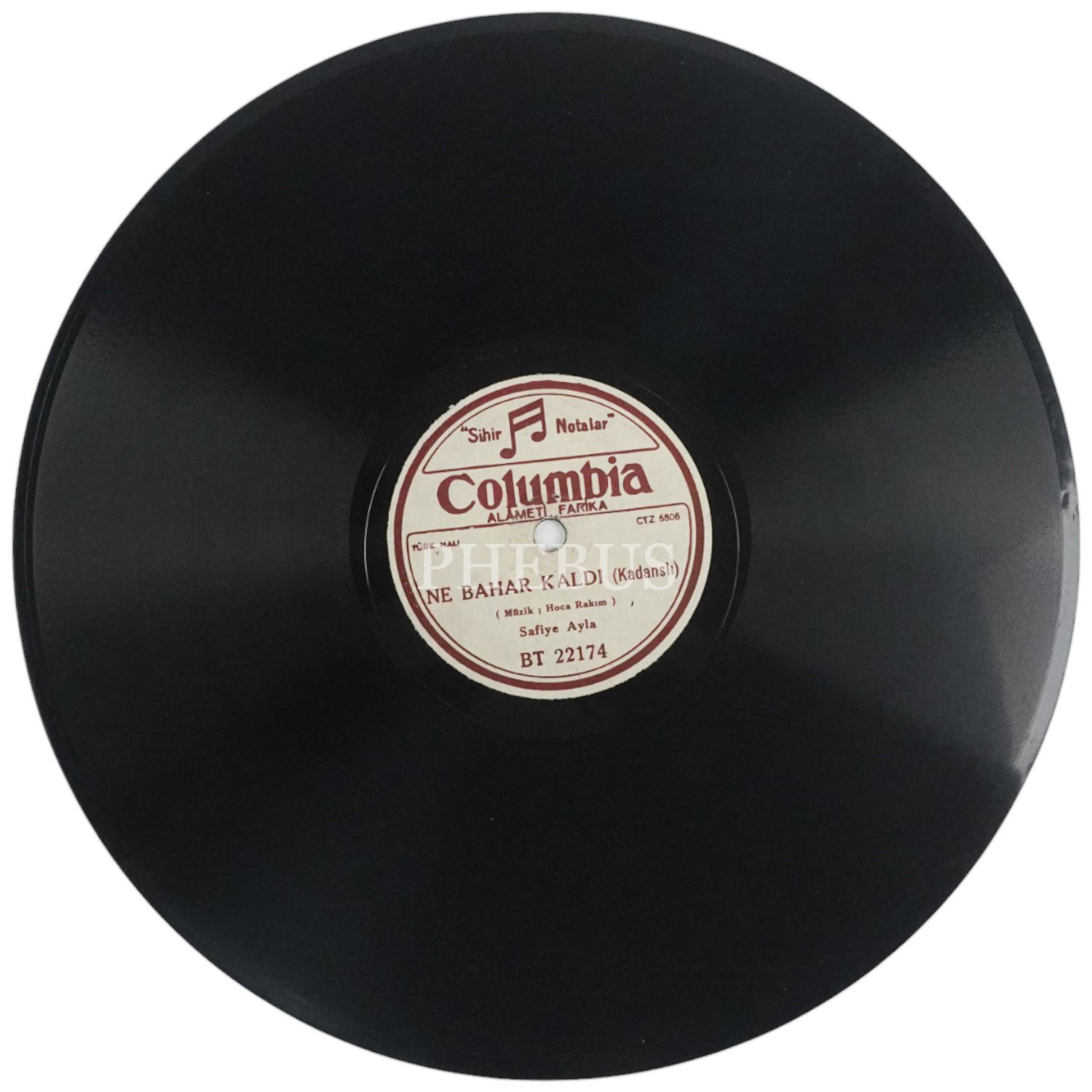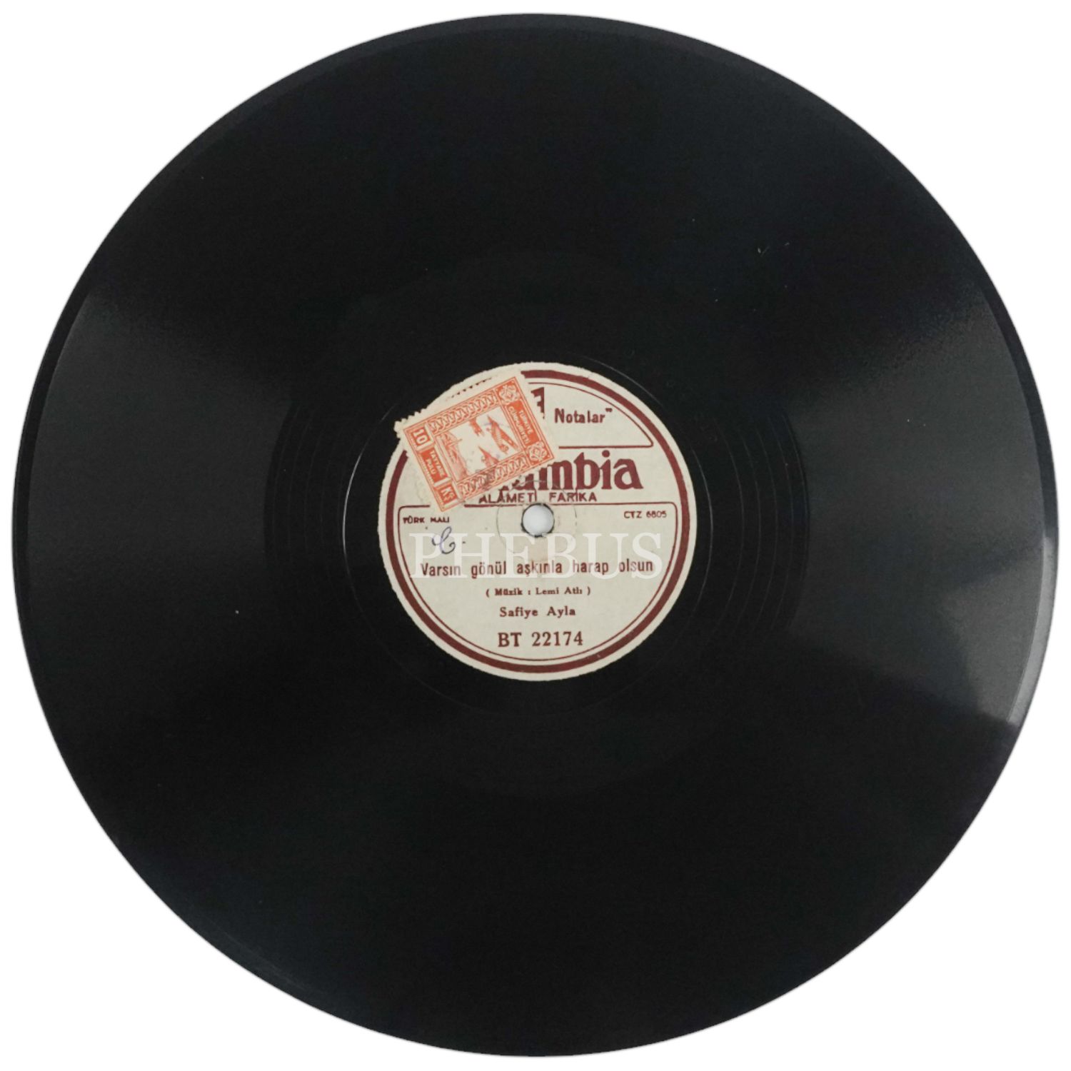A YÜZÜ: VARSIN GÖNÜL AŞKINLA HARAP OLSUN, Müzik: Lemi Atlı, B YÜZÜ: NE BAHAR KALDI, Müzik: Hoca Rakım, Seslendiren: Safiye Ayla, Columbia
