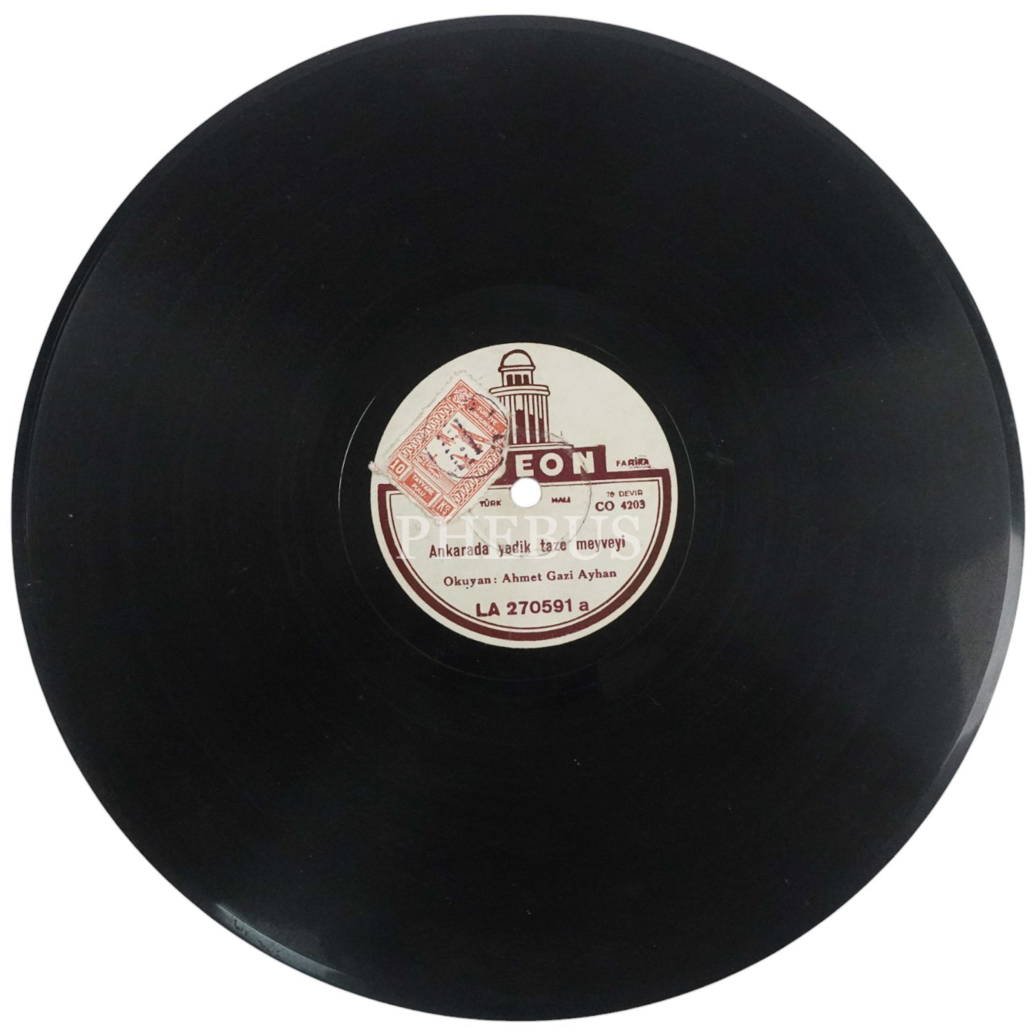 A YÜZÜ: ANKARADA YEDİK TAZE MEYVEYİ, B YÜZÜ: TAHTA KURUSU TÜRKÜSÜ, Seslendiren: Ahmet Gazi Ayhan, Odeon